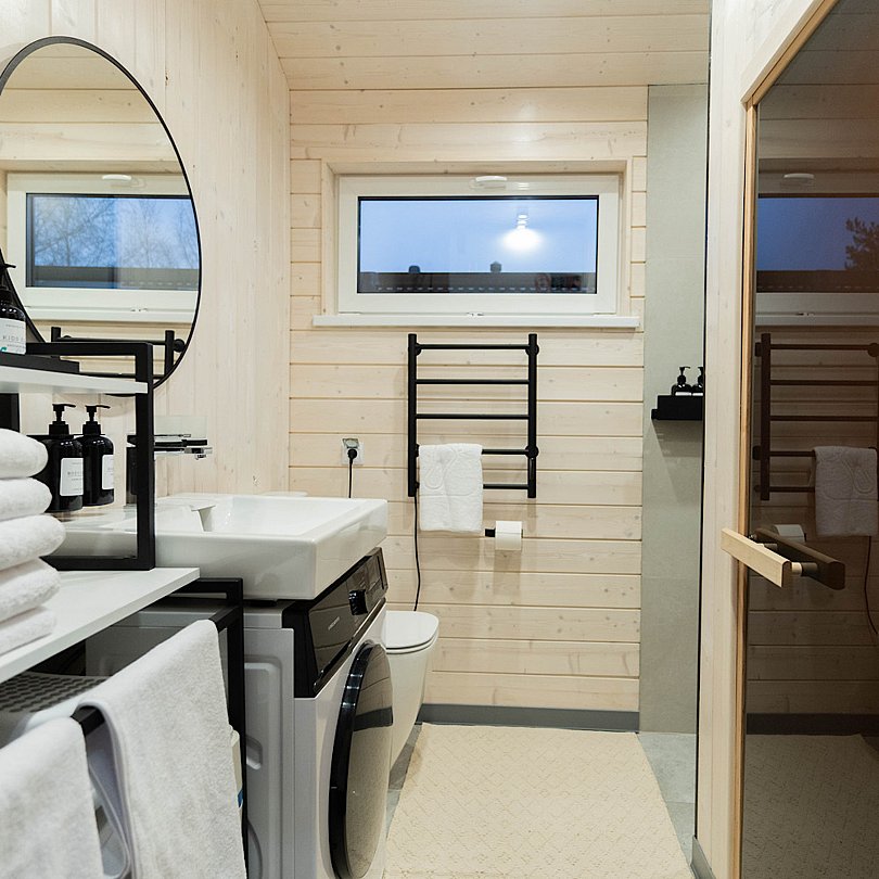 Одна топка сауны входит в стоимость проживания (три часа парения). Дополнительное включение сауны — 3000 ₽ за 3 часа.