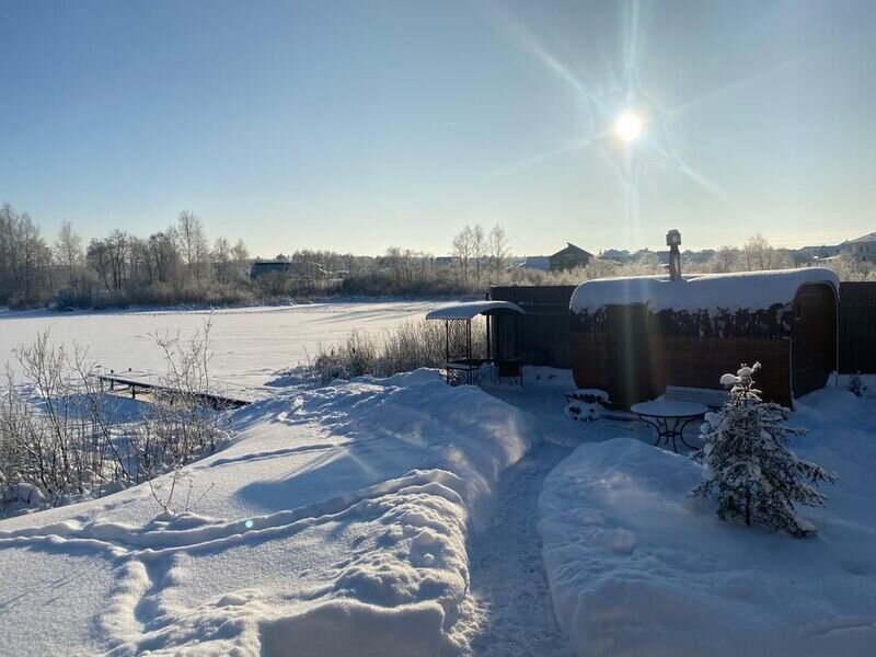 - Река прямо у порога домика, свой песчаный пляж ️, наслаждайтесь красотой воды и возможностью купаться. ( зимой мы делаем прорубь).