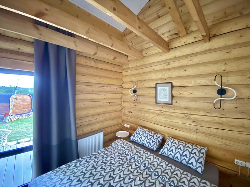 Спальня в домике обеспечит вам спокойный и комфортный сон. Она оформлена с любовью к деталям с удобной кроватью и мягким постельным бельем. Вы сможете проснуться отдохнувшими и полными энергии для нового дня.
