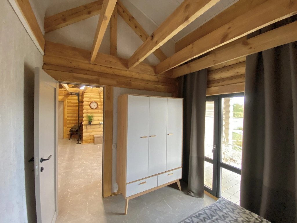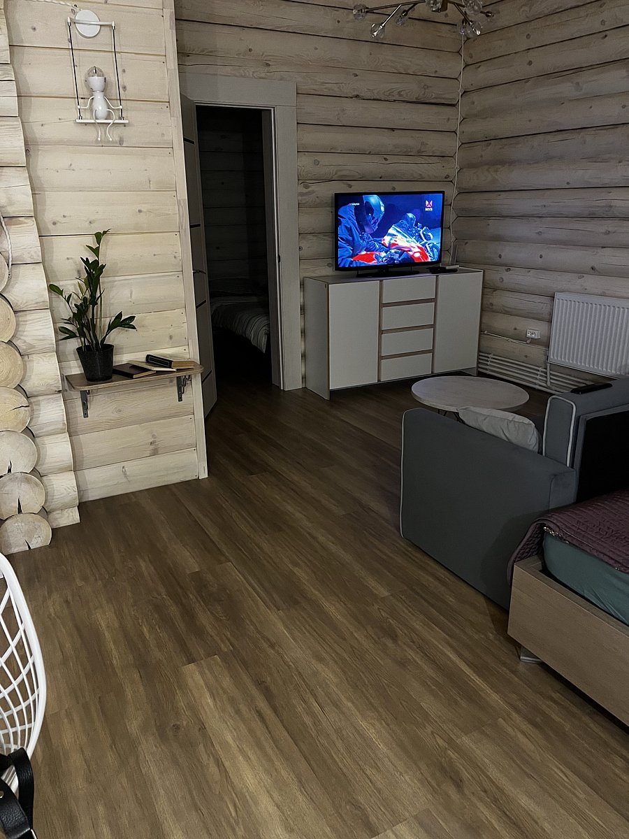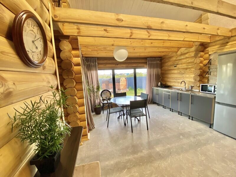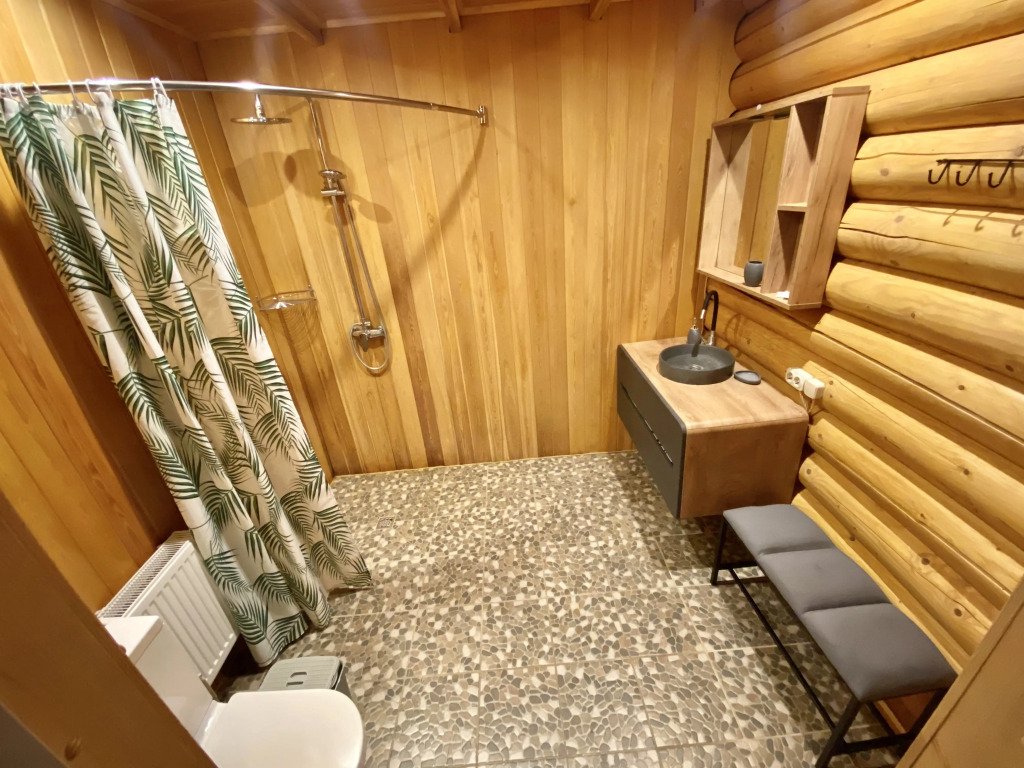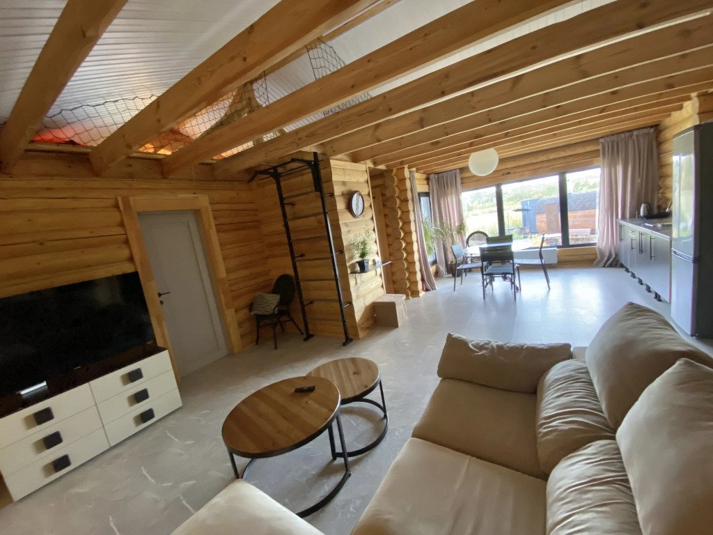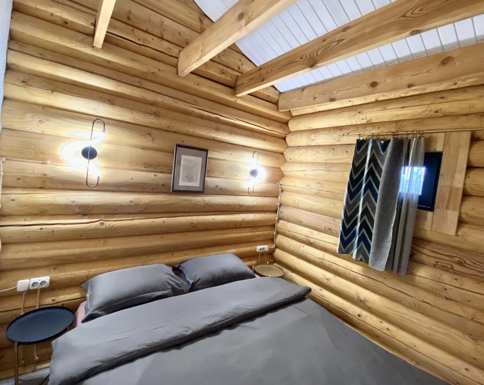 Домик выполнен из натурального дерева и полностью оборудован для комфортного проживания. В нем есть все необходимое для вашего отдыха: