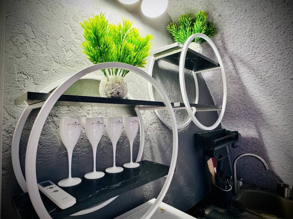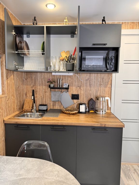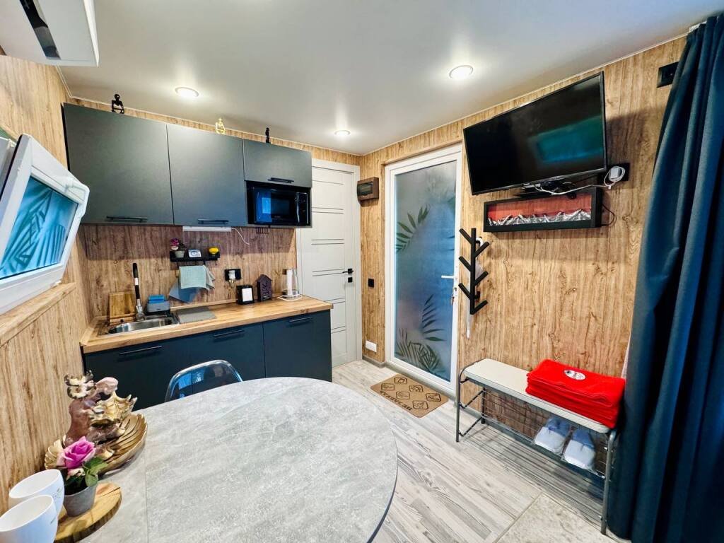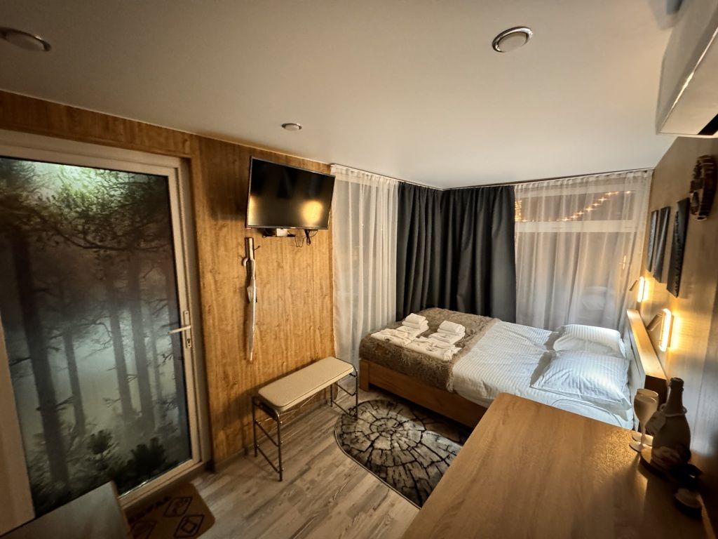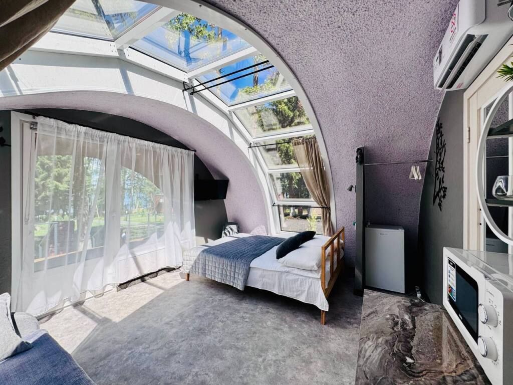 Гостям предлагается шесть домиков в окружении природы. В домиках тёплые полы с индивидуальной регулировкой температуры, панорамные окна с видом на озеро, кухня с холодильником, микроволновкой и плитой, сан узел с душевой и теплым полом, кондиционер, бойлер с горячей водой. Есть возможность готовить пищу самостоятельно. Гостям предоставляются мыло, шампунь, полотенца, халаты и тапочки, предоставляется доступ к сети Wi-Fi.