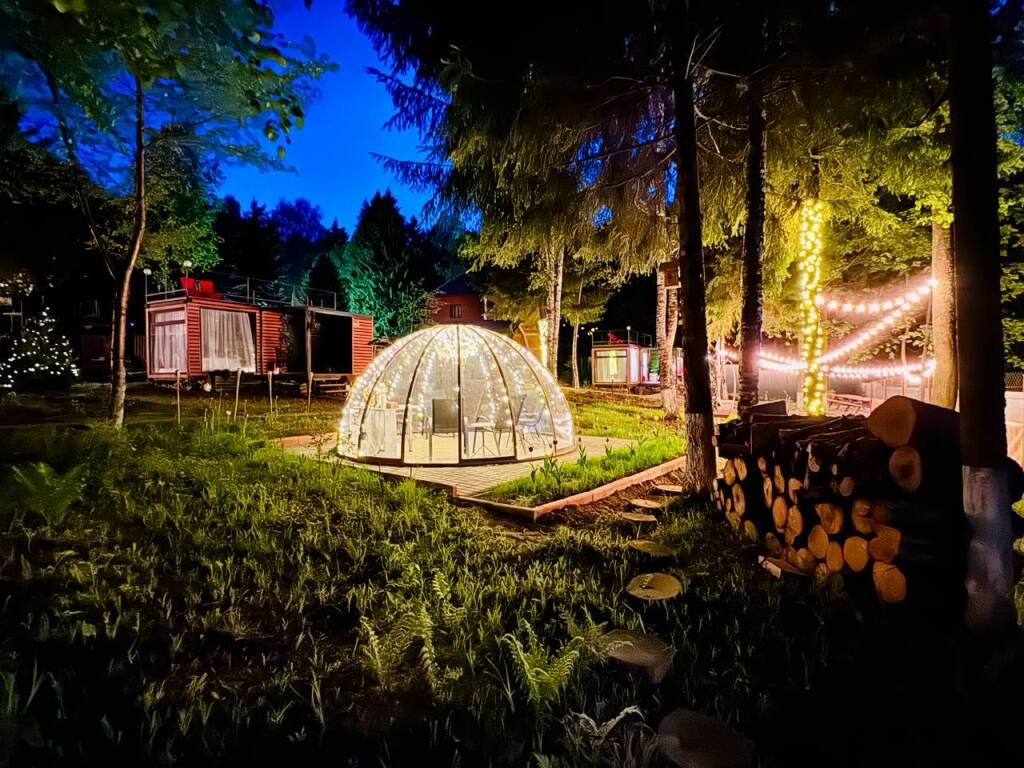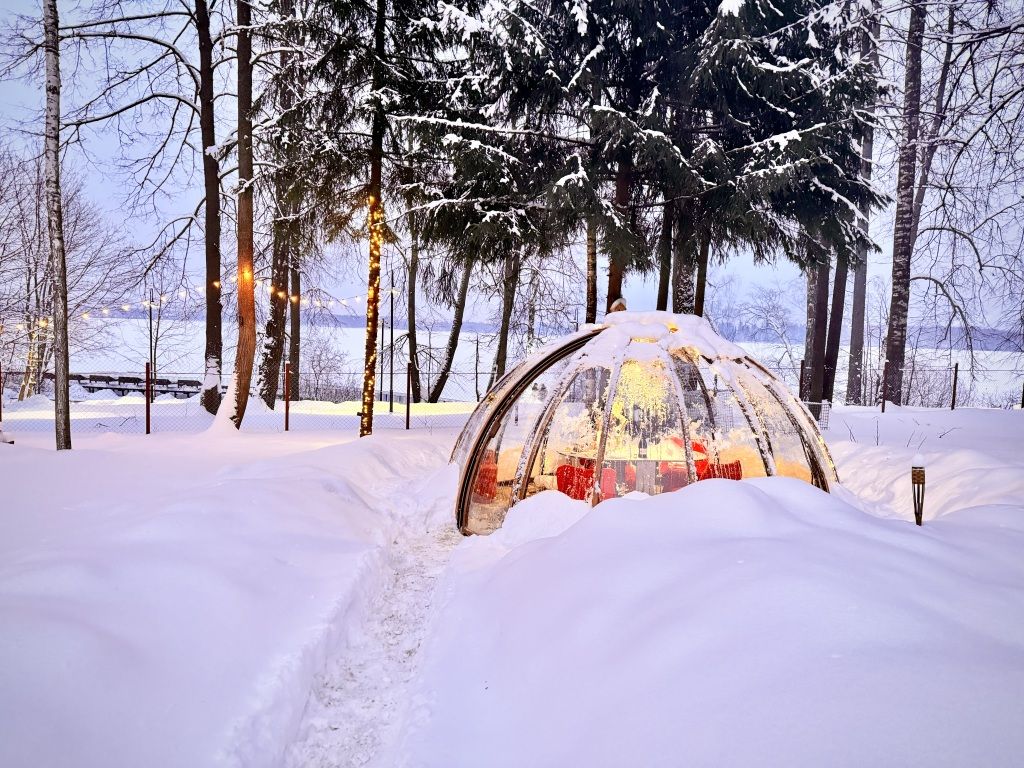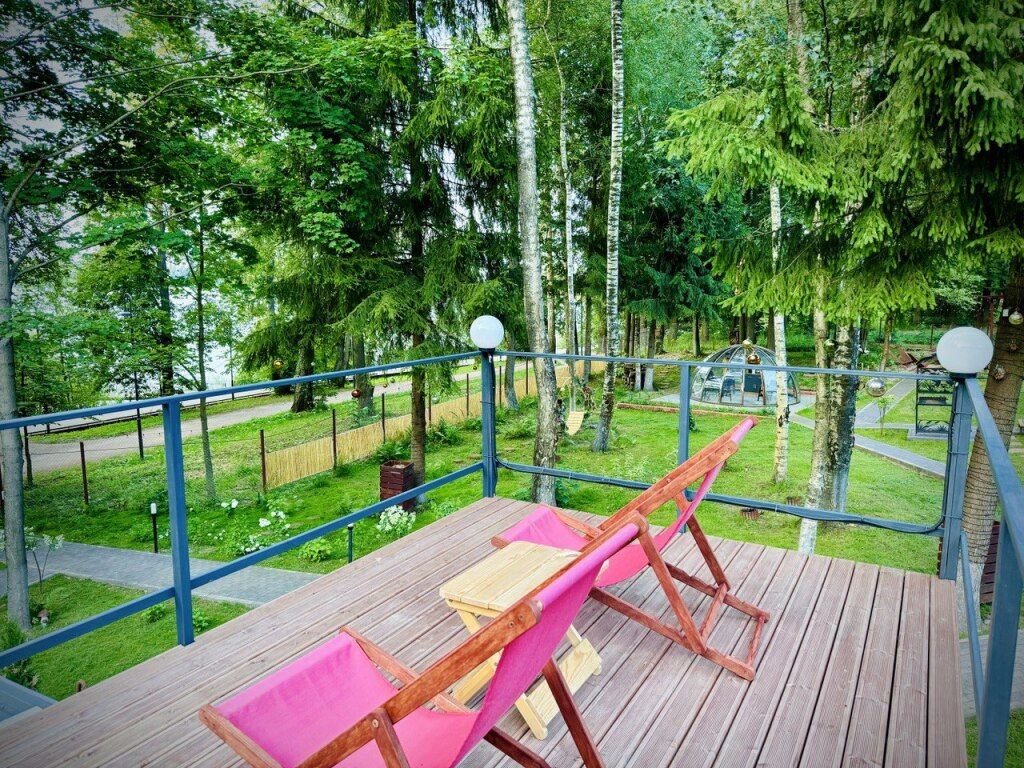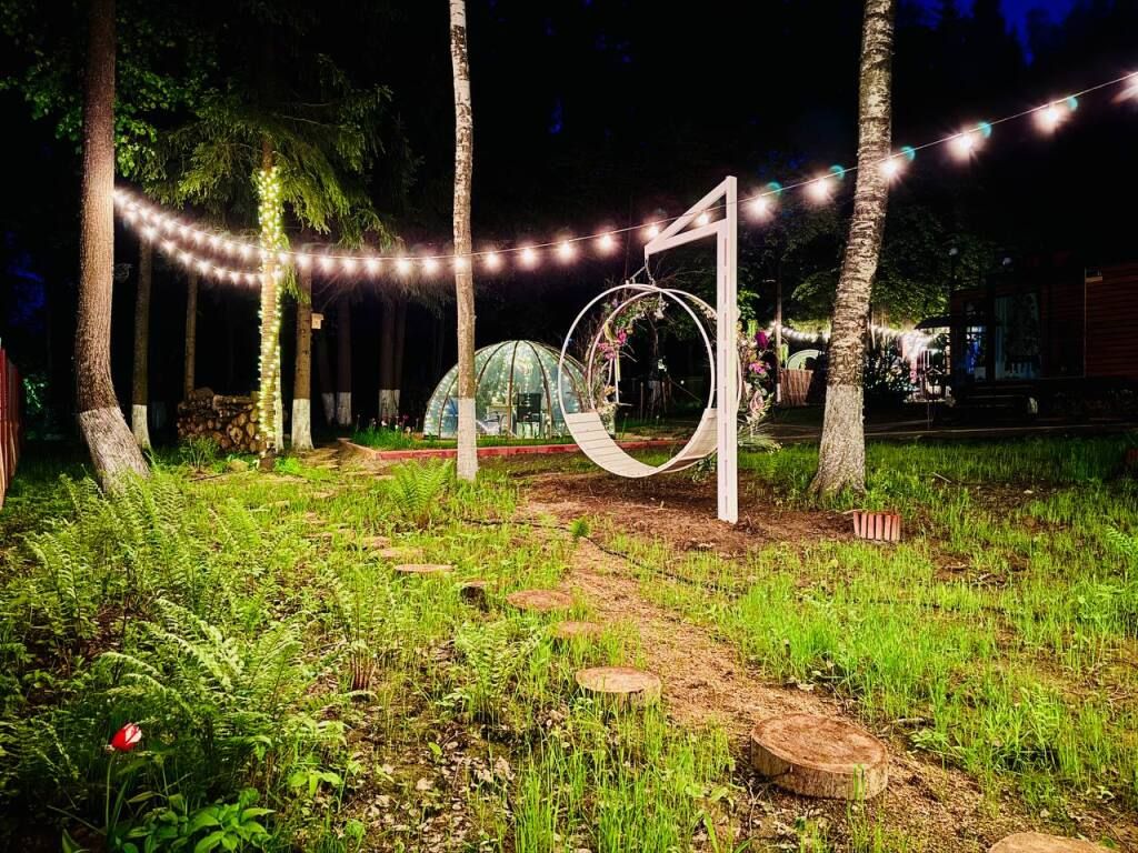 На общей территории имеется чайная беседка Иглу с самоваром и баранками, зону отдыха со столами, которые можно объединить для большой компании. Организовано множество локаций для фотосессий, есть уголок под открытым небом для вечерних посиделок у костра.