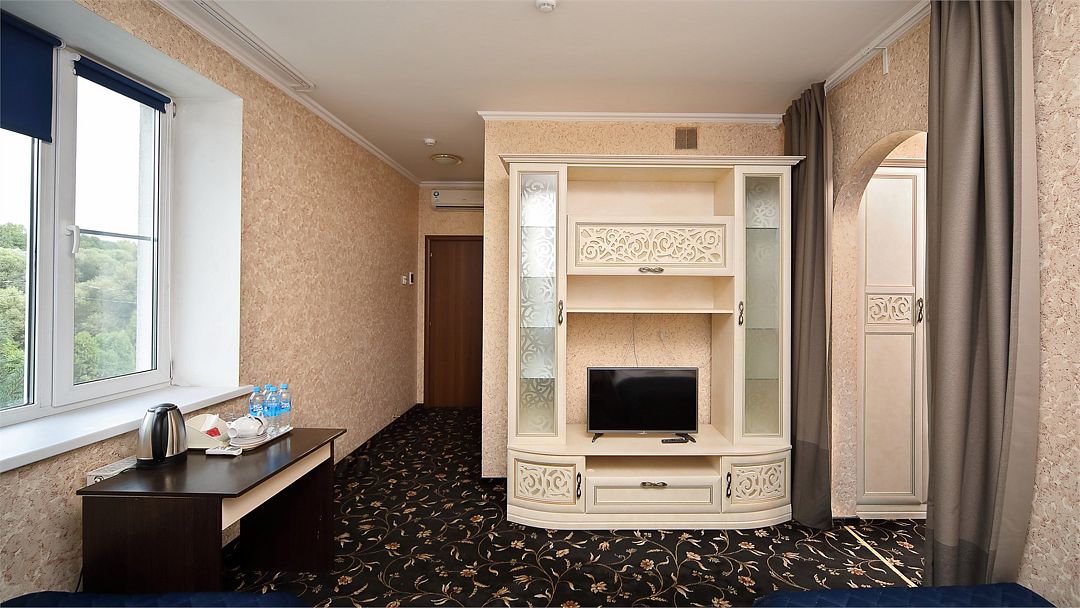 Номер "Люкс 1" повышенного уровня комфортности, исполнены в эксклюзивном дизайнеУслуги и удобства