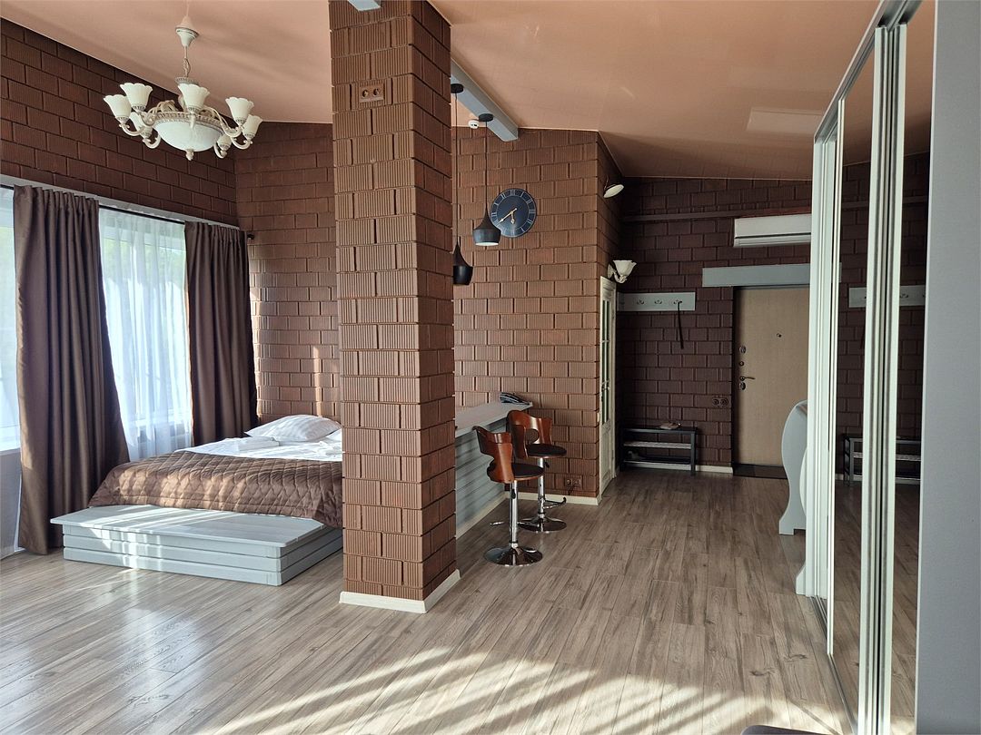 телевизор, спутниковое телевидение, интерактивное телевидение, Wi-Fi, интернет, телефон, холодильник, кондиционер, система климат-контроля, светильник, фен, ванная комната, ванна, санузел, халаты, тапочки, гигиенические средства, кровать «King size», стулья, обеденный стол, барная стойка, зеркало, мебельный гарнитур, звуконепроницаемые стены и окна, чайный набор, обслуживание номеров, раковина, отопление, отдельный вход в номер, вид на реку, ламинат, высокие потолки, стаканы, стол, туалет, сплит-система, панорамные окна, внутренний телефон, телевизор с плоским экраном, москитная сетка, номер для некурящих, чайная станция, без питомцевВ апартаментах