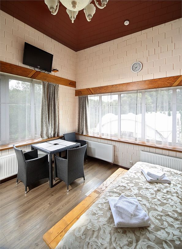 Путешествие с семьейОстались самые лучшие впечатления. Рекомендую и семьям и компаниямНам с мужем очень понравилось. И уютные номера, и внимание персонала, и различные варианты проведения досуга, и домашняя кухня, и ухоженная территория, и шикарная горячая баня с бассейном. Прекрасный зал для торжеств и банкетов.