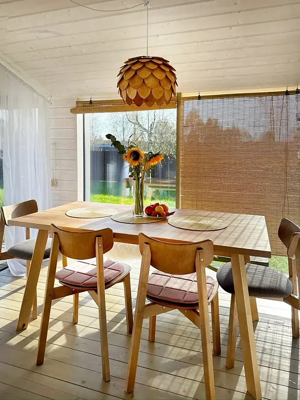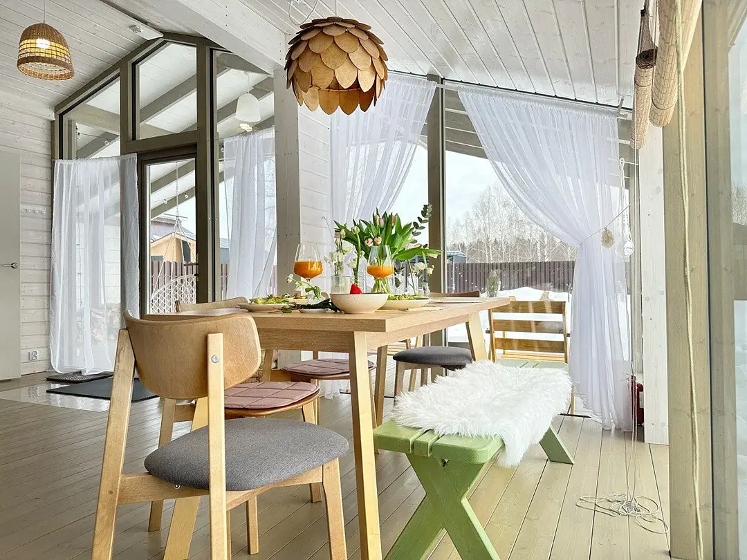 Проснитесь на мягких белоснежных простынях, выйдите на деревянную веранду, укутавшись в тёплый халат, и услышьте пение птиц. Позанимайтесь йогой на восходе солнца, почитайте книгу, наслаждаясь чашечкой ароматного кофе в плетёном кресле. Слушайте виниловые пластинки, загорайте на зелёной лужайке, любуйтесь красочными закатами под мягким пледом в окружении близких людей. Наблюдайте, как языки пламени играют на костре, где уже готовится ваше любимое блюдо. Аромат наполняет воздух и шепчет: «Жизнь прекрасна!»