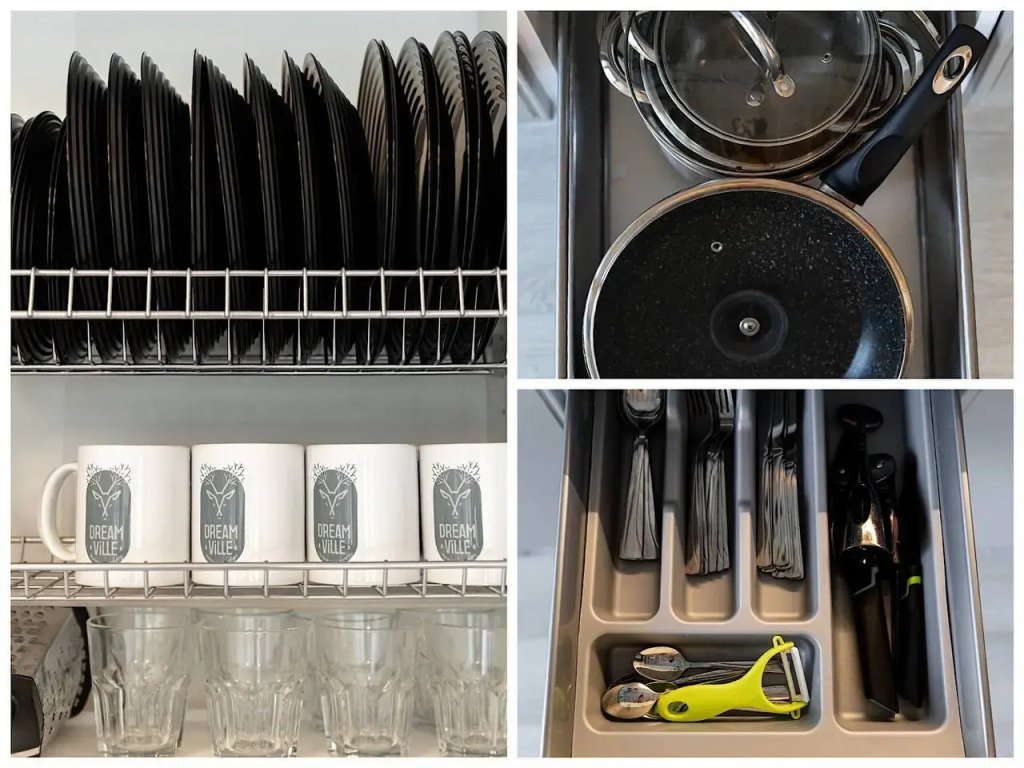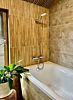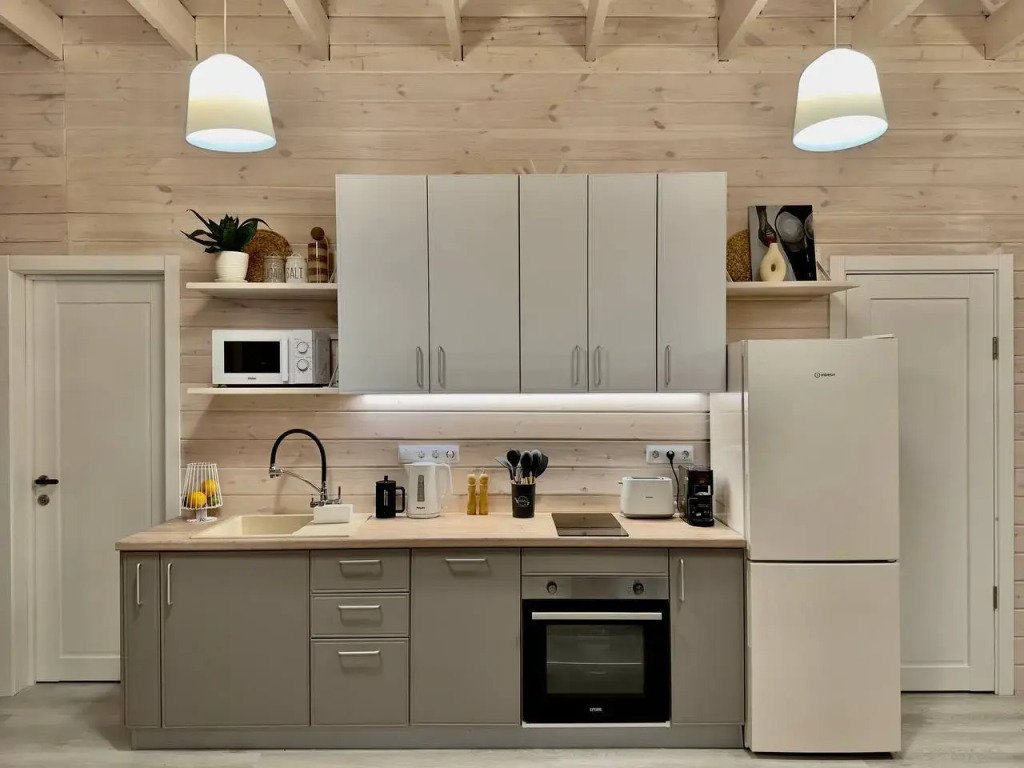 В доме есть необходимое для комфорта: 3 спальни с ортопедическими матрасами, 2 кровати 160х200 см, 1 кровать 140х200 см, кухня-гостиная с диваном-кроватью 160х200 см, терраса, Wi-Fi, Smart-ТV, умная колонка, кофемашина, посудомойка, варочная панель, необходимая посуда и столовые приборы. Постельное бельё, полотенца, тапочки, косметика и средства гигиены.