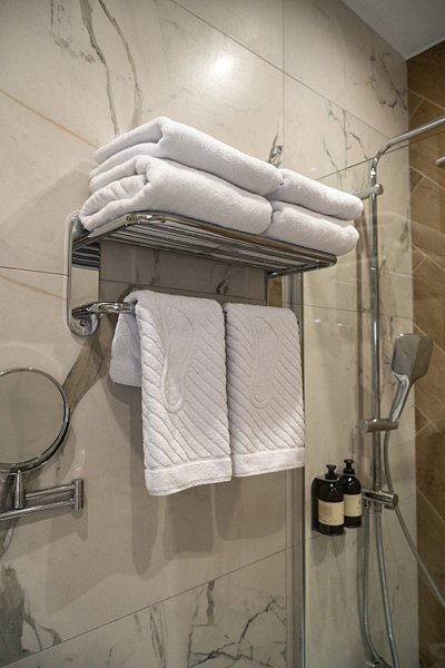У нас был семейный номер, нам понравилась планировка, две комнаты, достаточно хорошо изолированные, большая двуспальная кровать и две кровати в маленькой спальне. Очень комфортные матрасы, подушки и белье, много полотенец, халаты тапочки, средства гигиены предоставляются. В номере чайник и пакетированный кофе-чай.