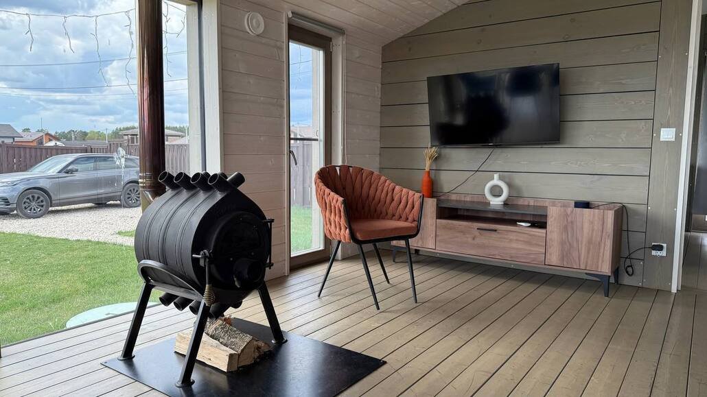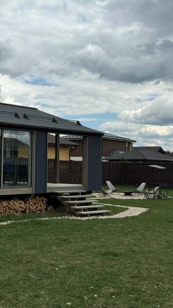 Вы можете начать день с завтрака на просторной террасе, позагорать на солнце или приготовить ароматные блюда на мангале. Вечером уютные кресла у костра станут отличным местом для наблюдения за звездами. Для безопасности установлено видеонаблюдение на входе.