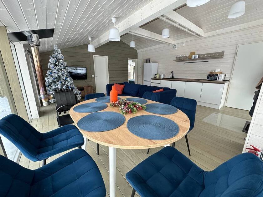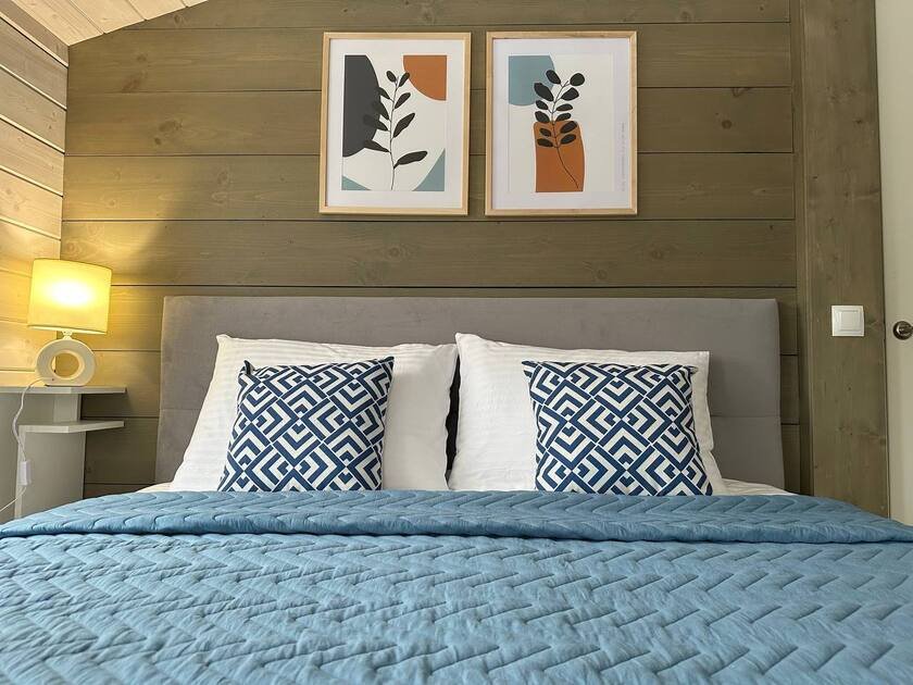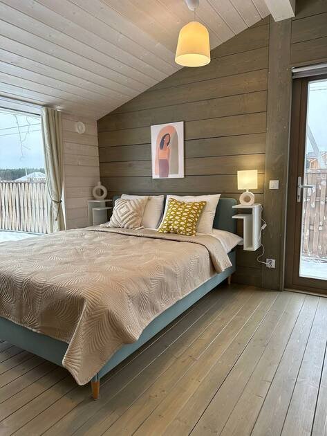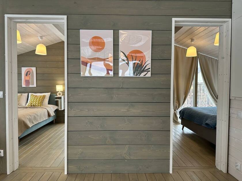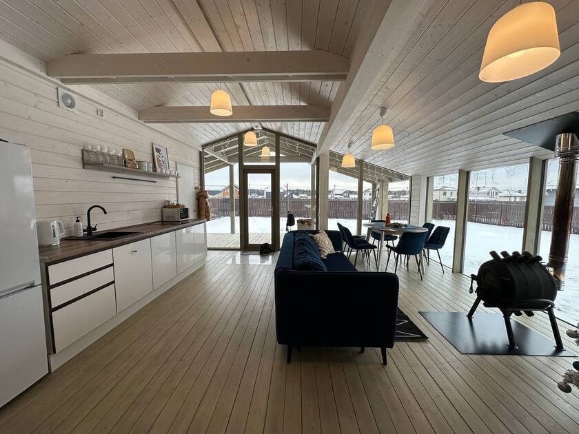 Внутри «Дубльдома» гостей ждут три отдельные спальни, стильная кухня-гостиная с диваном-кроватью, а также уютный санузел и ванна. В доме есть вся необходимая мебель, современная техника, посуда, чистые постельные принадлежности и средства гигиены. Все это делает пребывание здесь максимально комфортным.