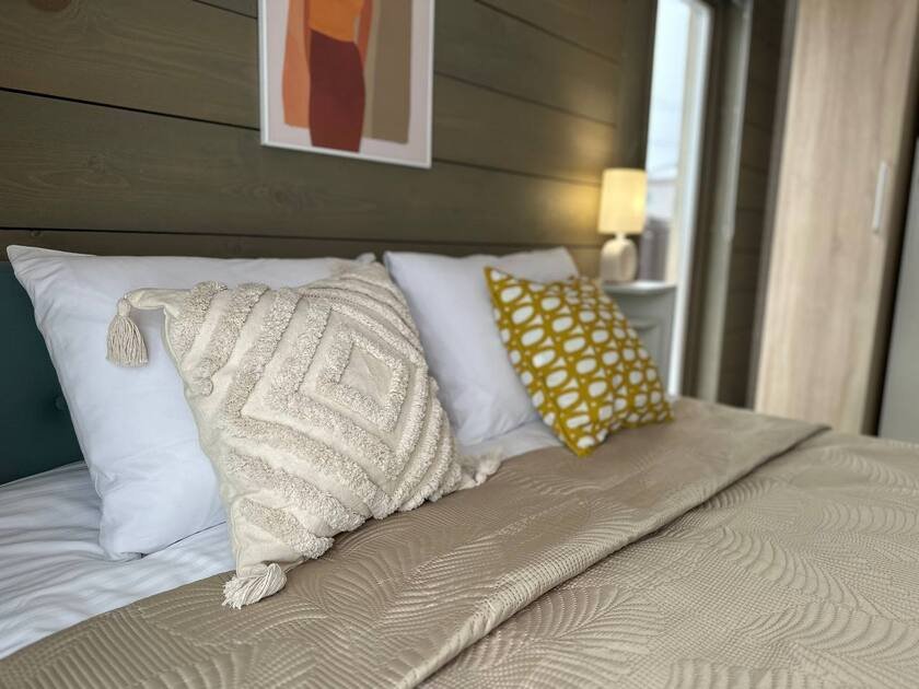 Современный дубльдом с панорамными окнами в престижном поселке Greenwood. Внутри расположены три изолированные спальни, кухня-гостиная с раскладным диваном, санузел с ванной и просторная терраса. Дом оснащен стильной мебелью, современной техникой, посудой, чистым бельем, полотенцами и базовыми средствами гигиены.