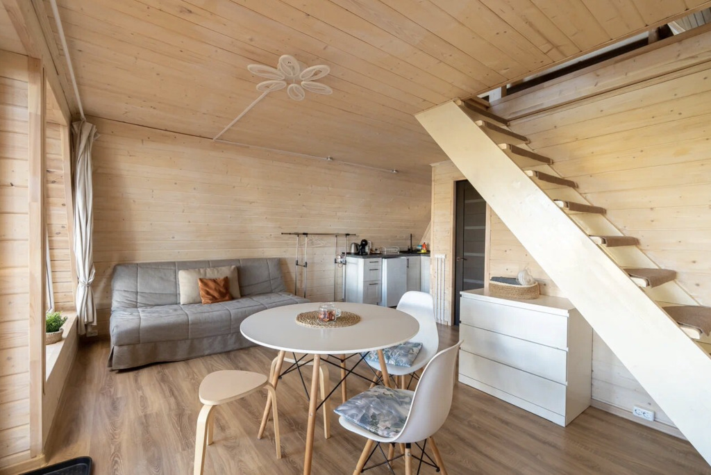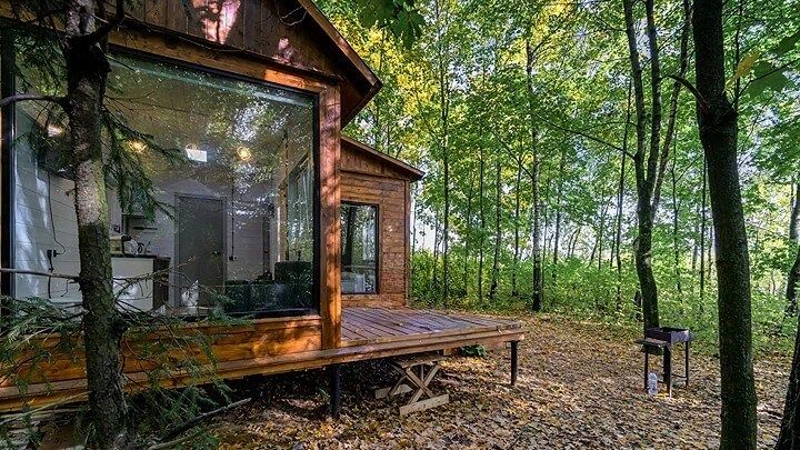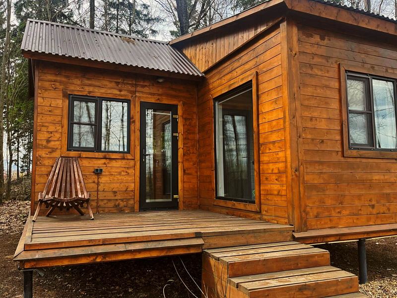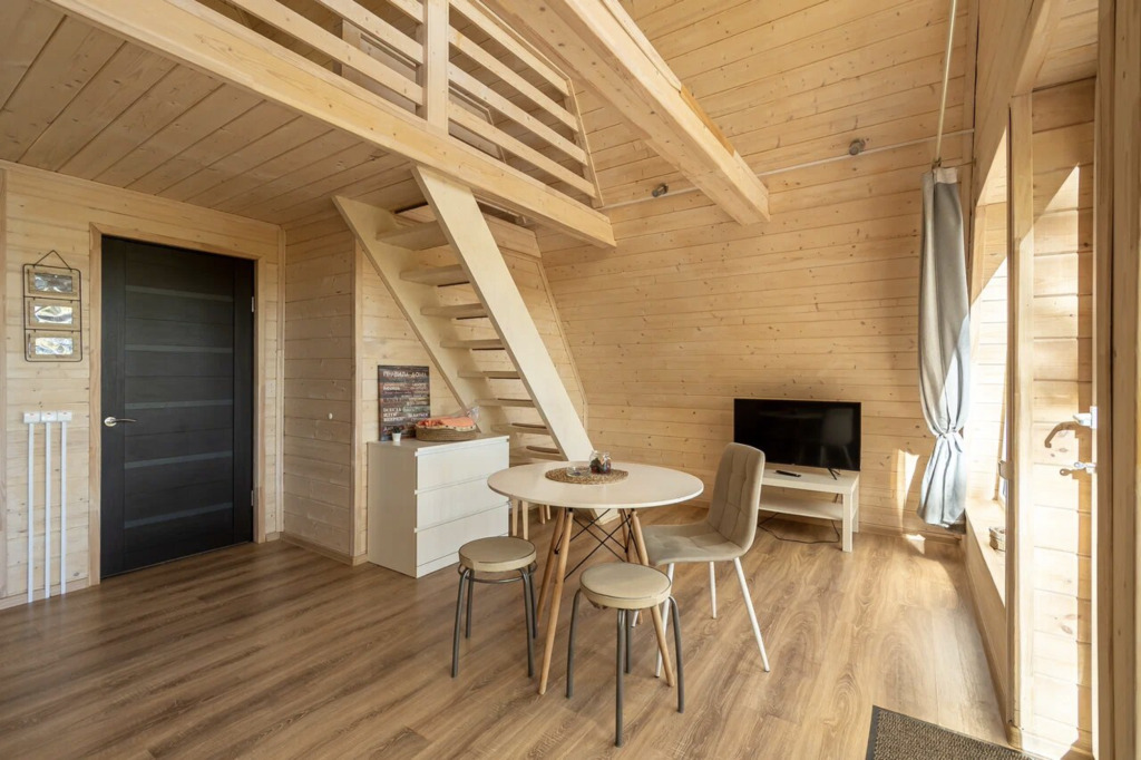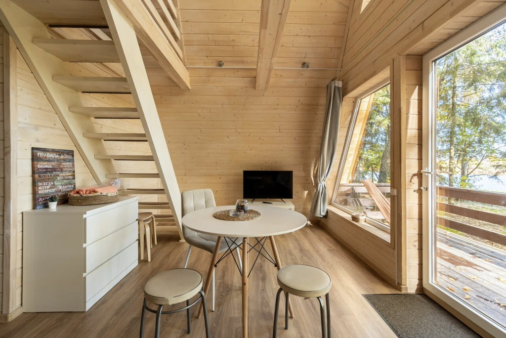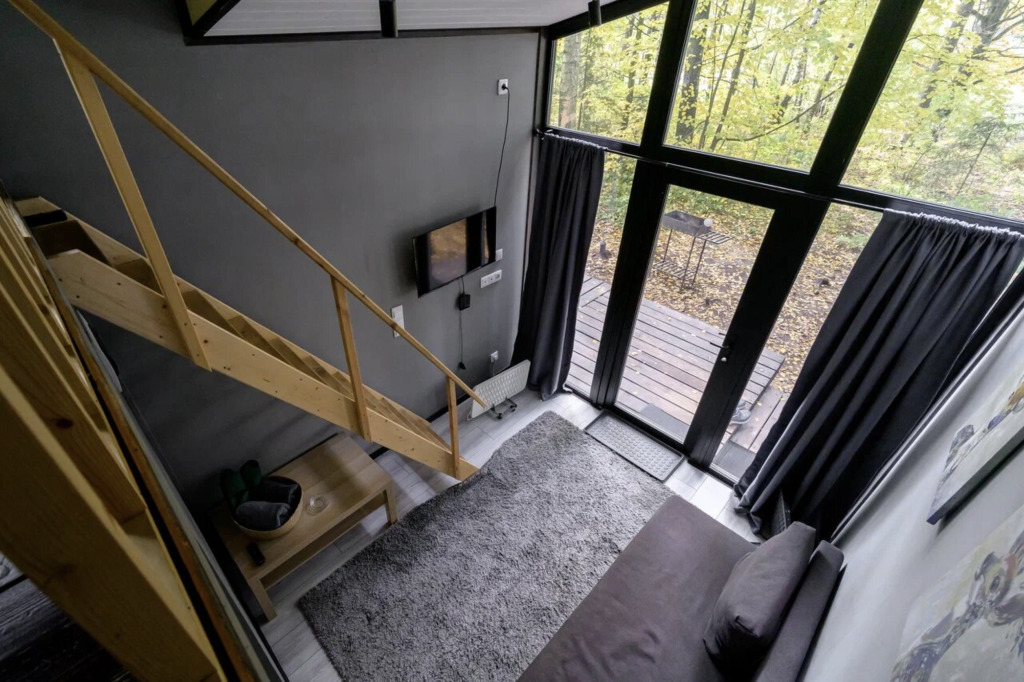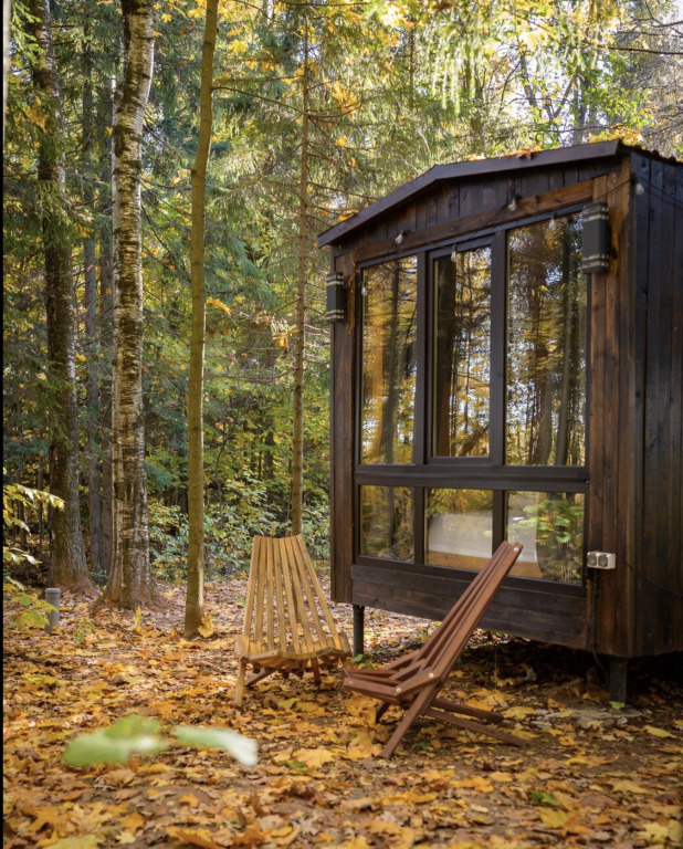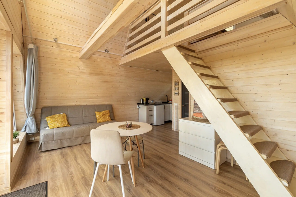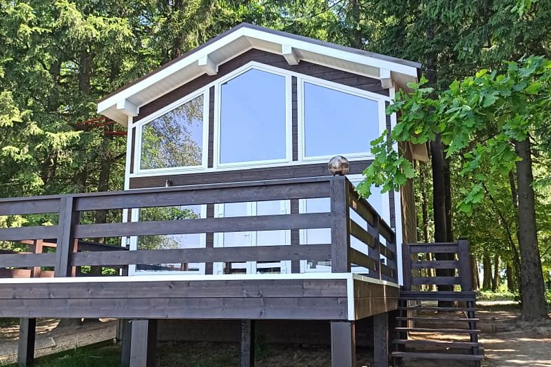 Двухуровневый домик (24 кв.м.) с панорамными окнами и красивым видом. Рассчитан на максимальное размещение 4 человек