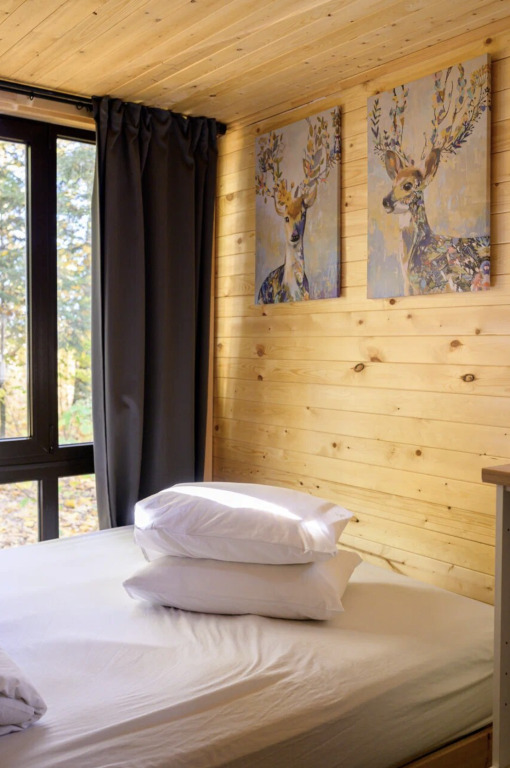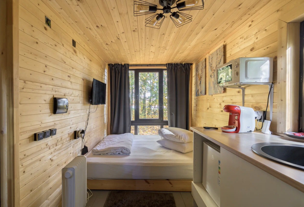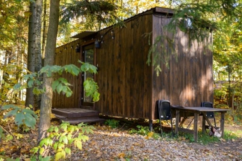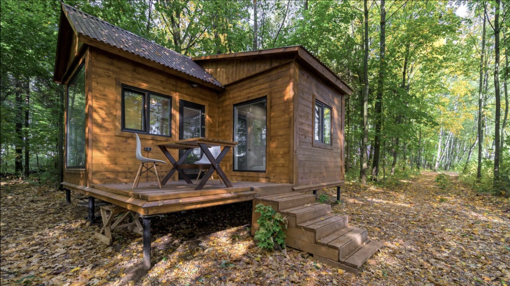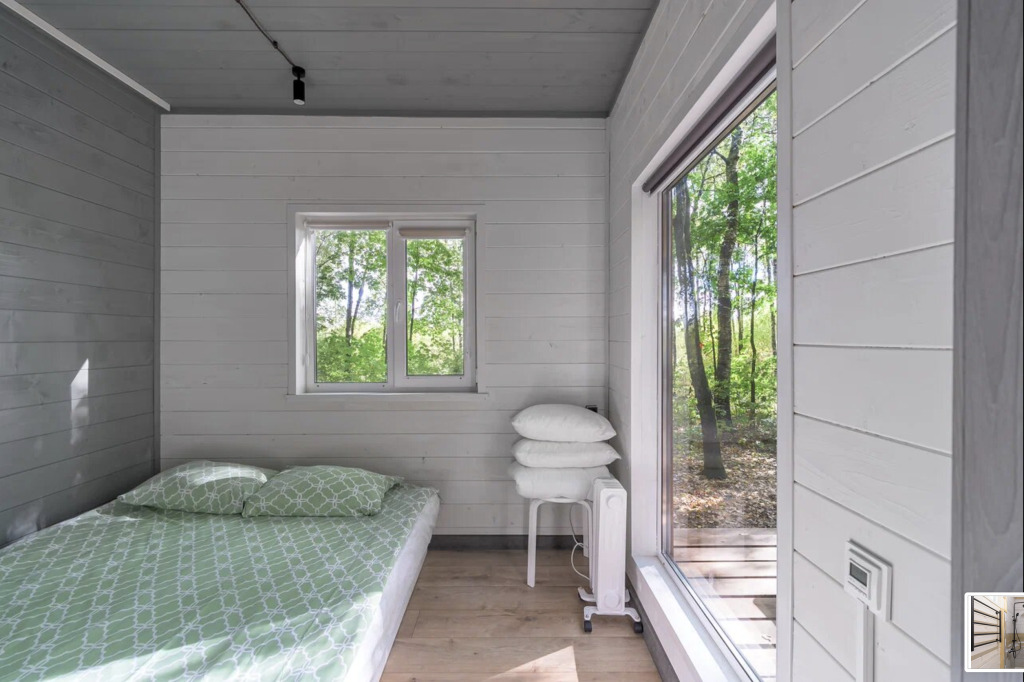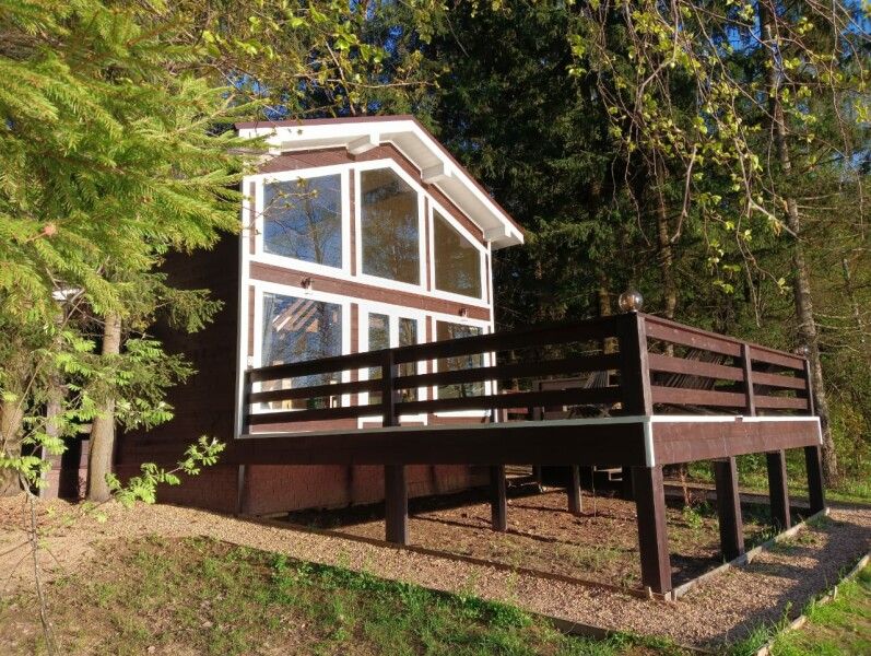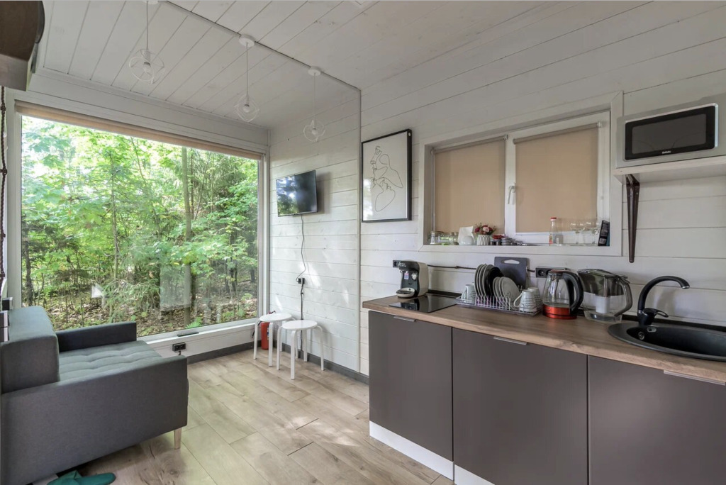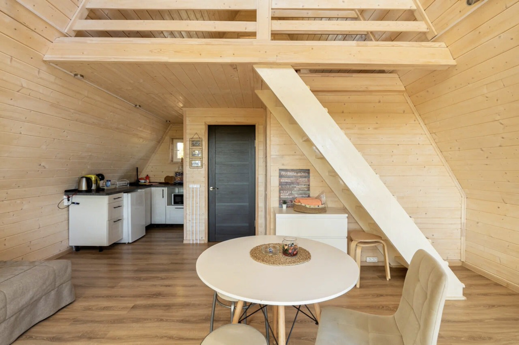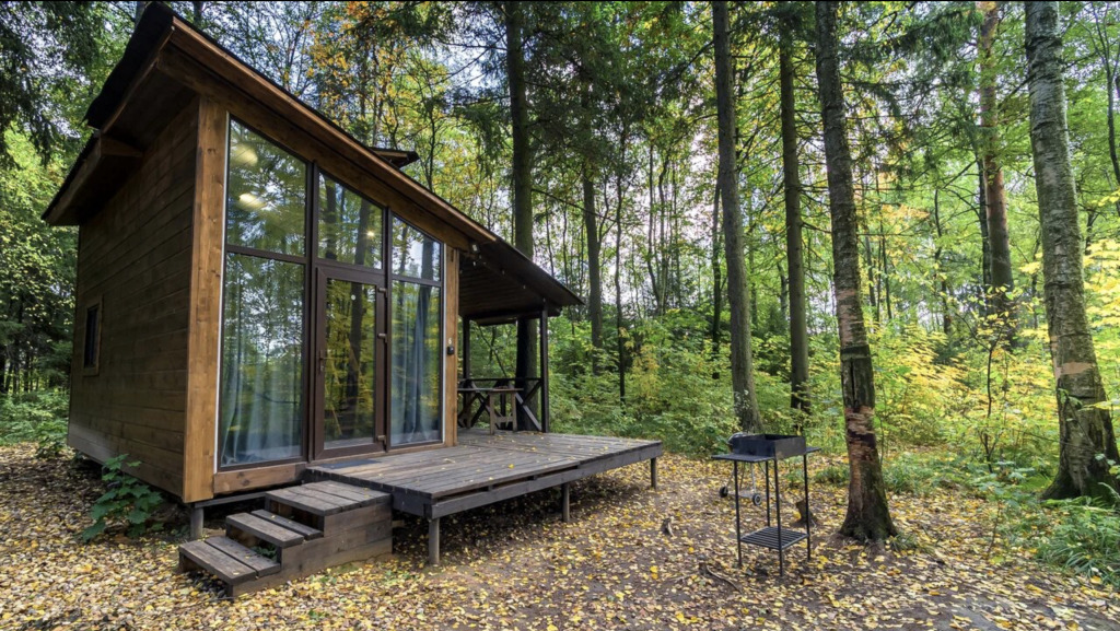 Двухуровневый домик (24 кв.м.) с панорамными окнами и красивым видом. Рассчитан на максимальное размещение 4 человек