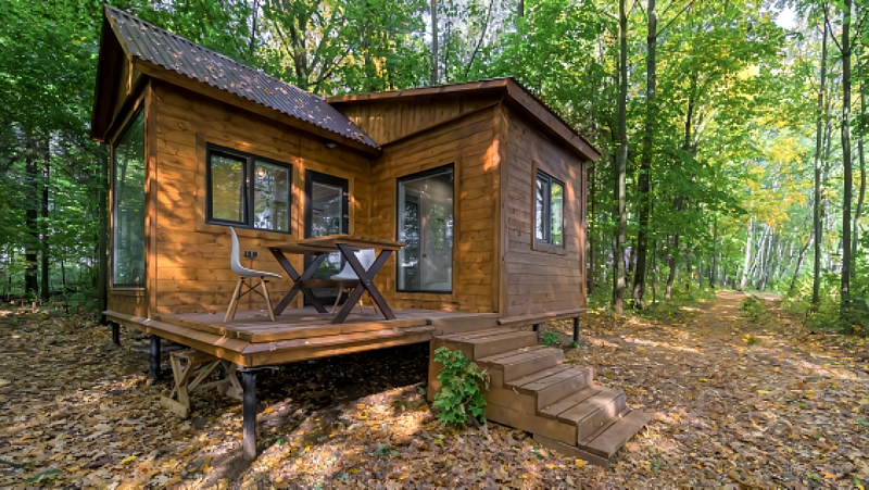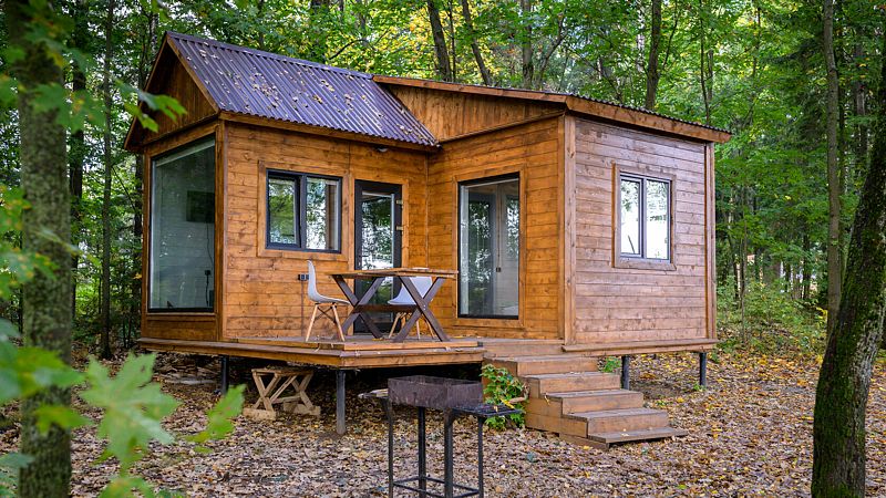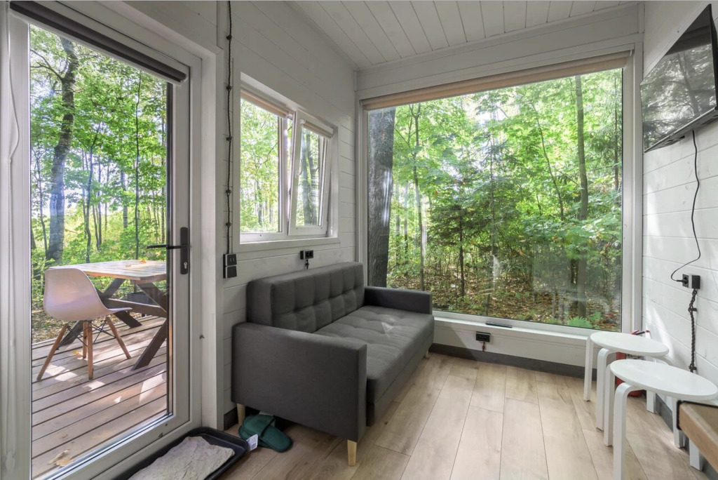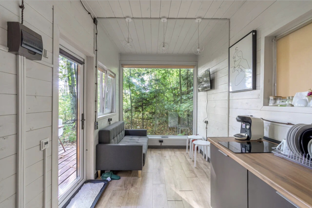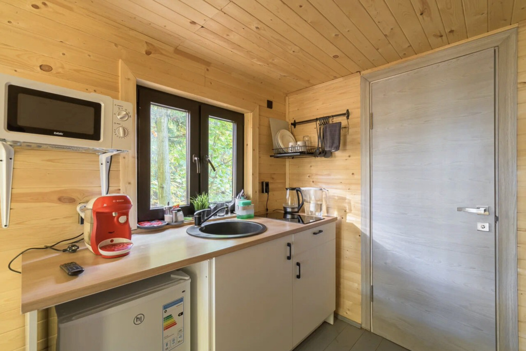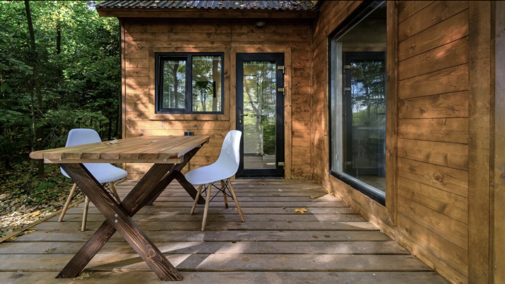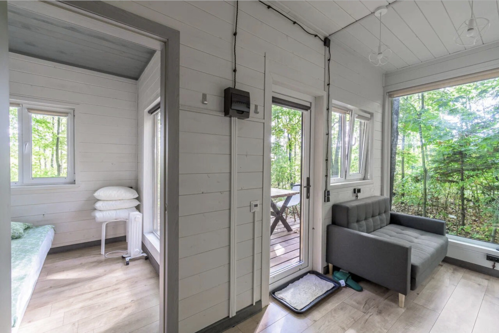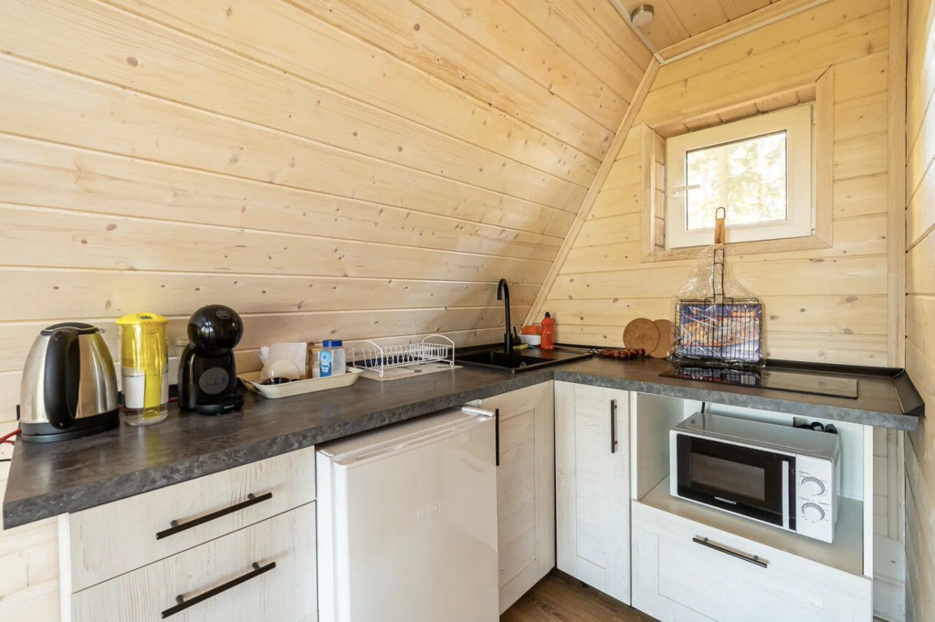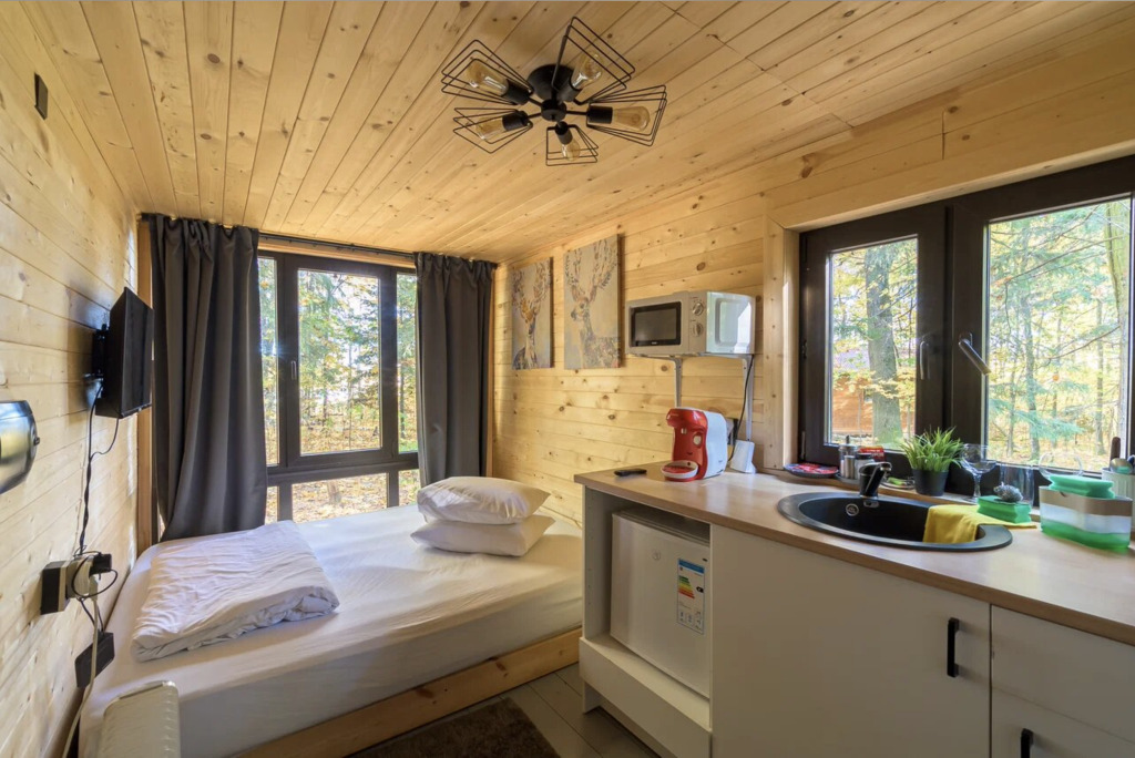 Двухуровневый домик (24 кв.м.) с панорамными окнами и красивым видом. Рассчитан на максимальное размещение 4 человек