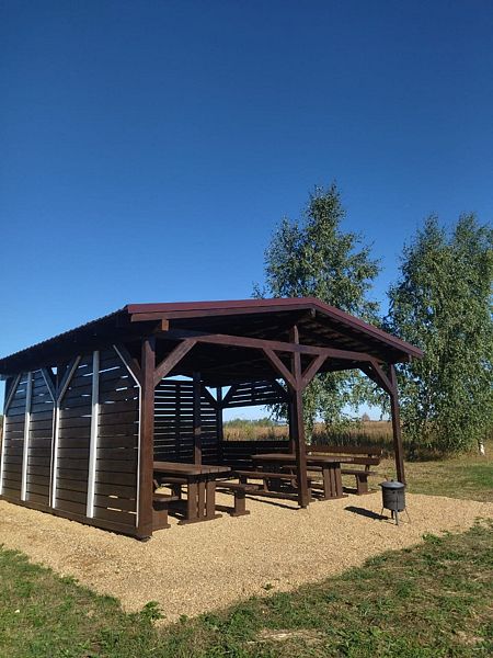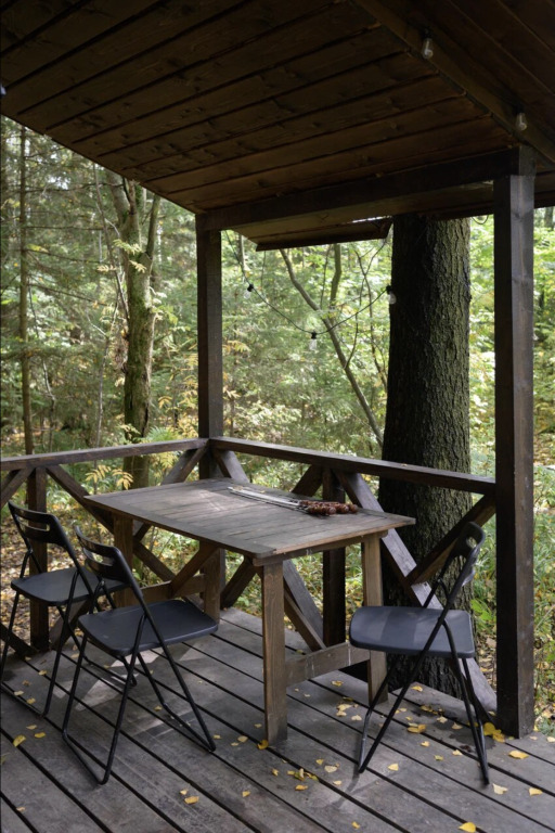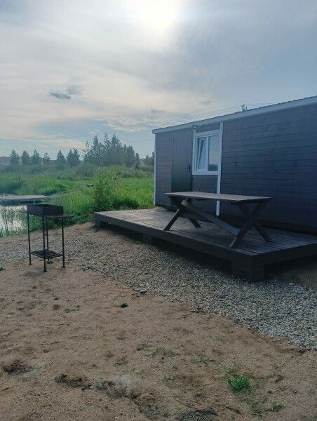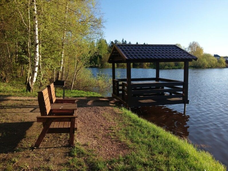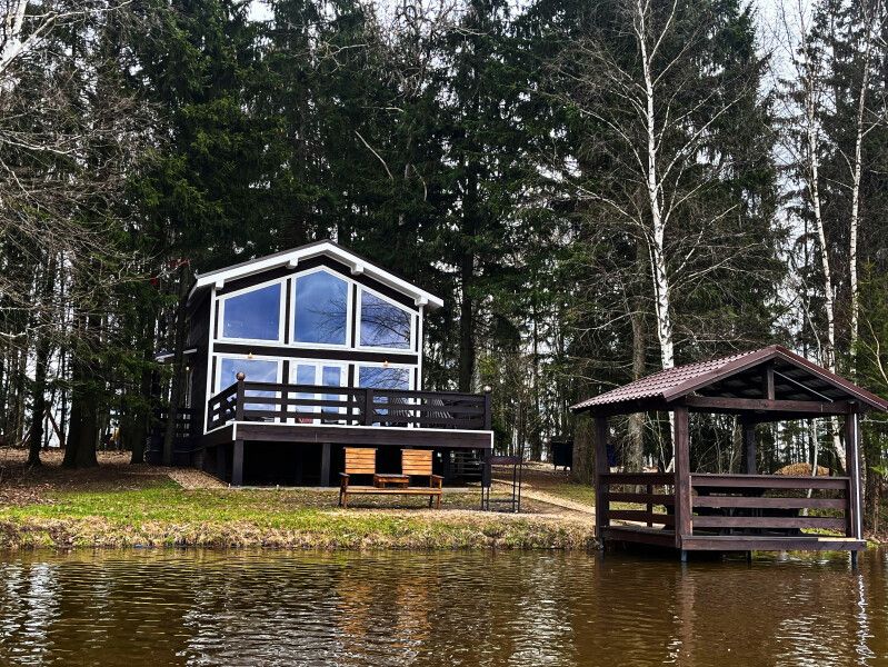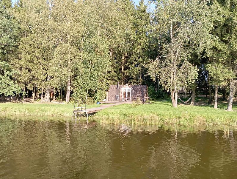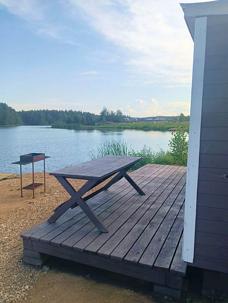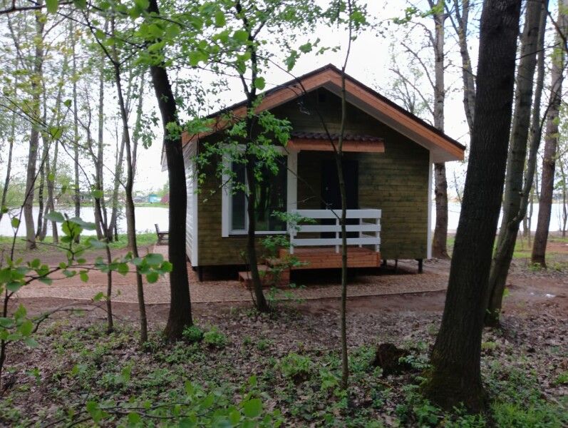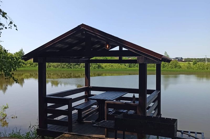 Рассчитан на 3 спальных места. Свой выход к пруду для рыбалки. Обеденная зона, микроволновая печь, чайник, холодильник. Есть терраса и мангальная зона. Туалет уличный.