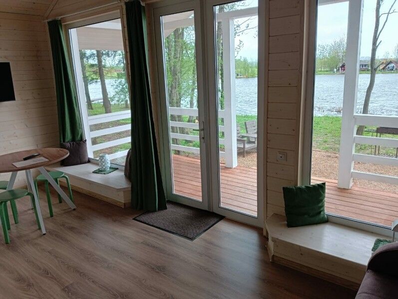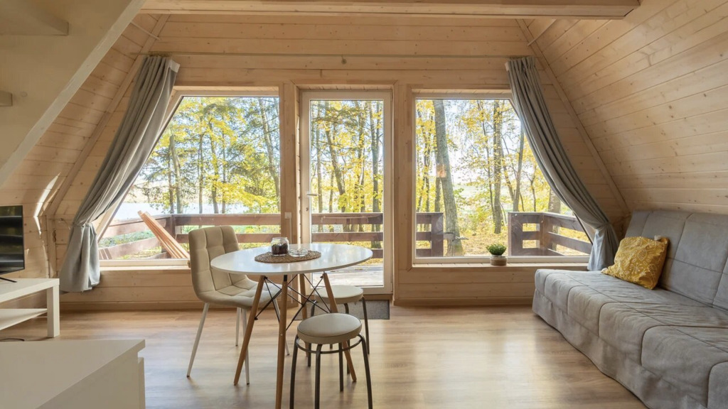 Двухэтажный домик у озера с отдельной спальней и общей гостиной.