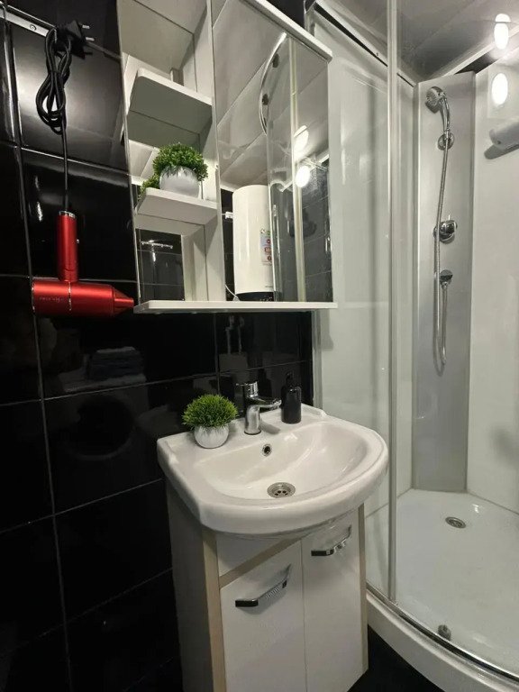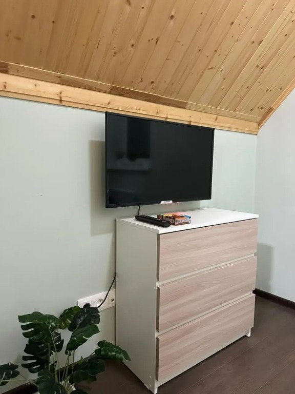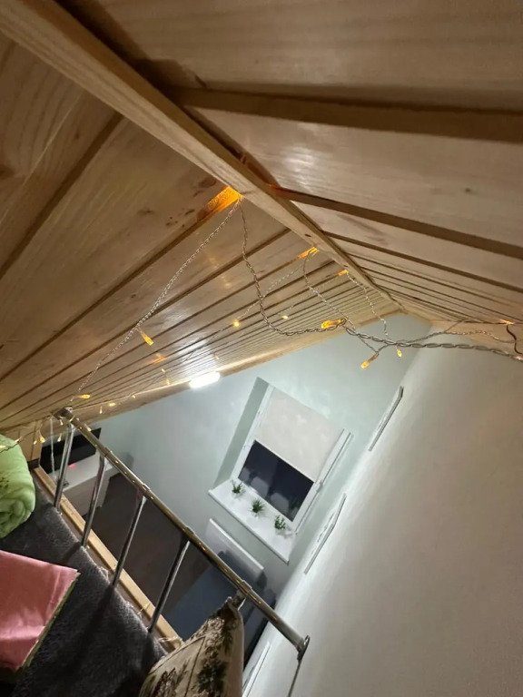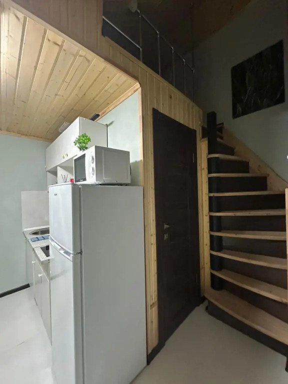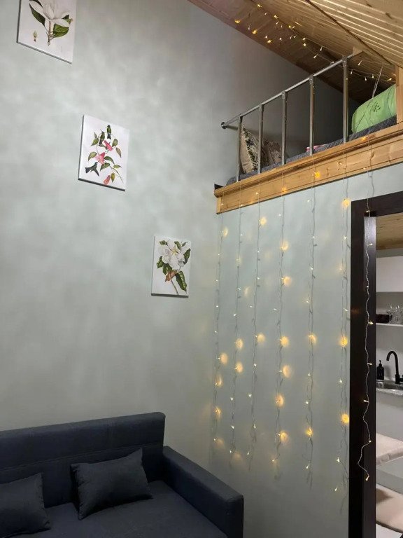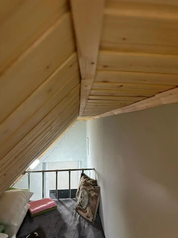 Частный дом является двухуровневым пентхаусом с высокими потолками. В распоряжении гостей диван-кровать и двуспальное место на втором уровне. Имеется небольшая кухня, оснащённая всем необходимым: есть посуда для приготовления пищи, микроволновая печь, кофемашина, сифон для газировки, чайник. Также в доме есть телевизор, безлимитный Wi-Fi, ванные принадлежности, постельное бельё и средства личной гигиены.