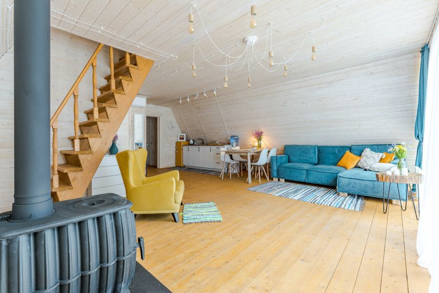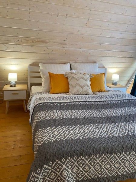 Дом для большой компании (возможное размещение до 8 гостей, три спальни и диван в гостиной).