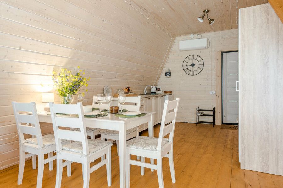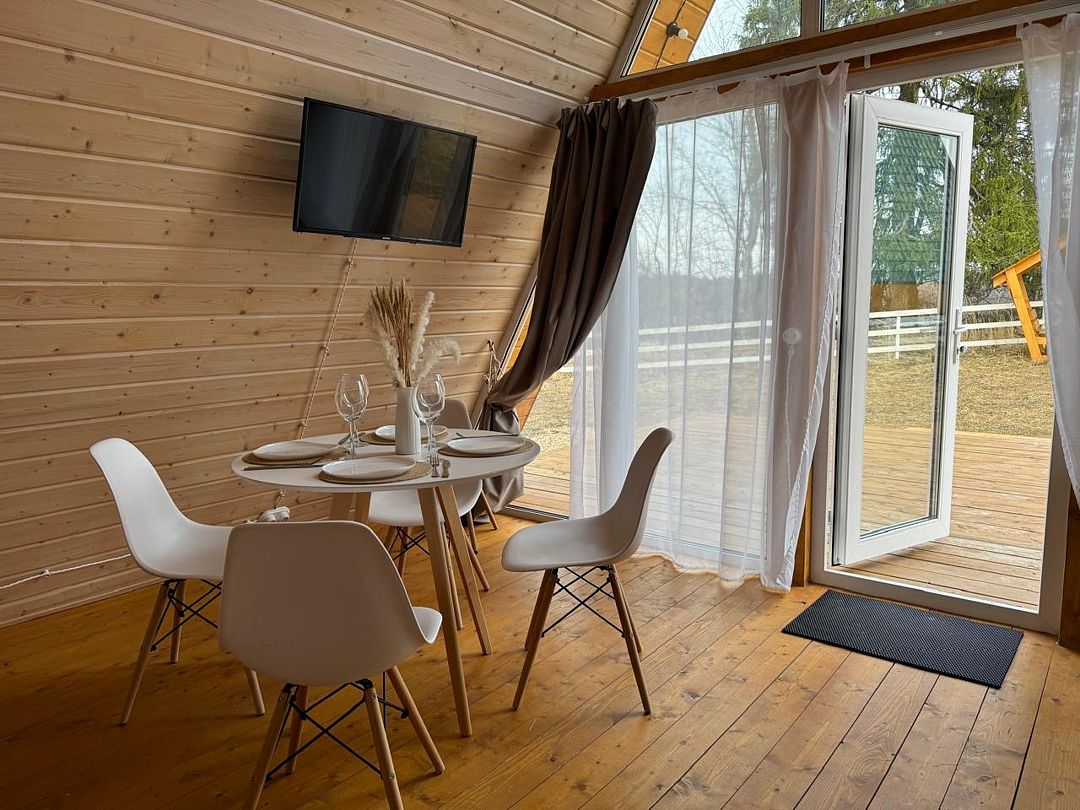 Дома Large вместимостью до 8-ми человек могут порадовать своих гостей наличием Русской Бани на собственной уединенной територии. Все дома имеют панорамное остекление, из которого открывается вид на умиротворяющий ландшафт, и полностью оснащены всем необходимым для комфортного проживания.