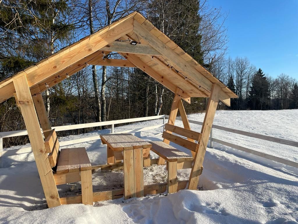 Можно арендовать сибирский чан и баню (территория большого дома). Костровая зона у каждого дома. Зона барбекю с беседками.