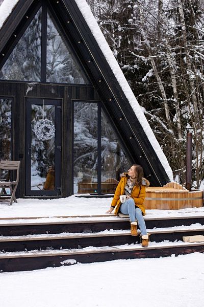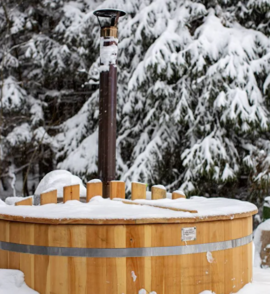 На крыльце каждого Домика установлена горячая купель. Невероятное удовольствие - наслаждаться парением в горячей воде, ловя кубами снежинки или подставляя лицо капелям дождя. Ароматный ягодный чай или бокал прохладного вина прекрасно дополнят удовольствие от процедуры.