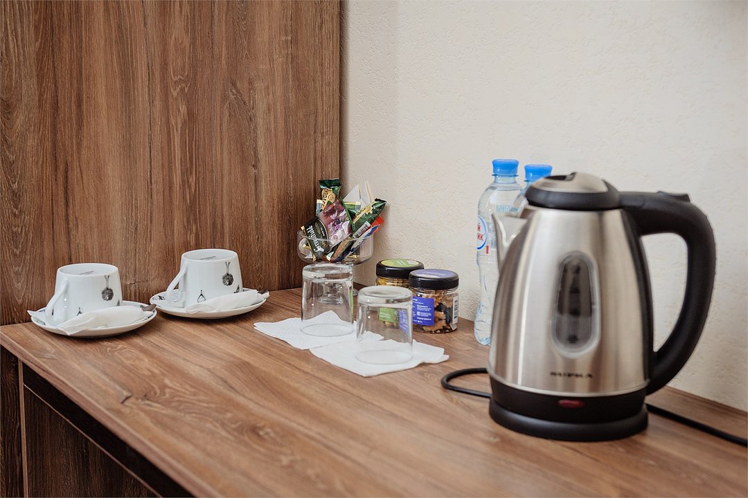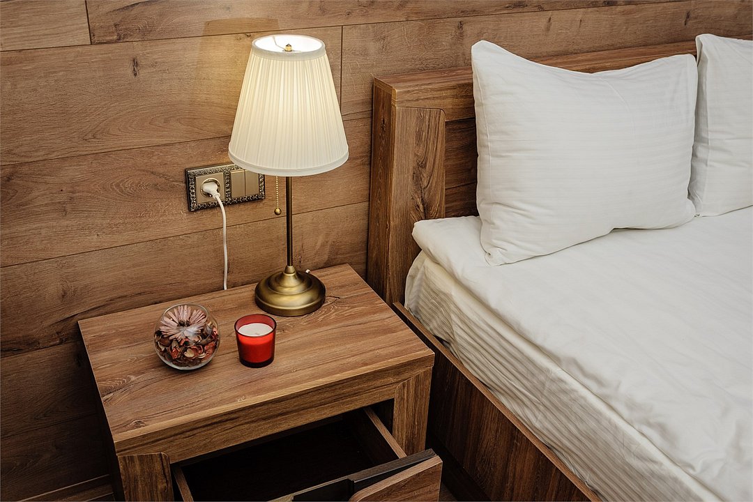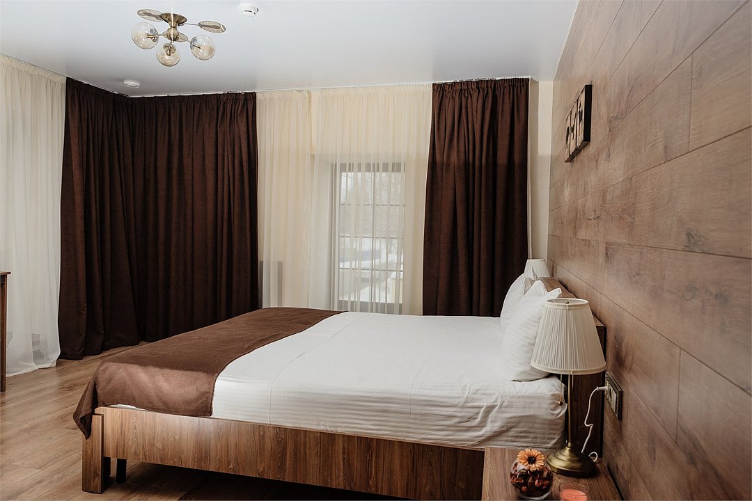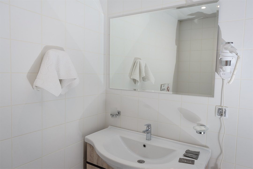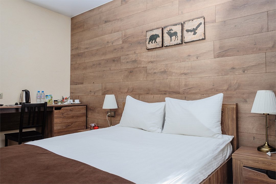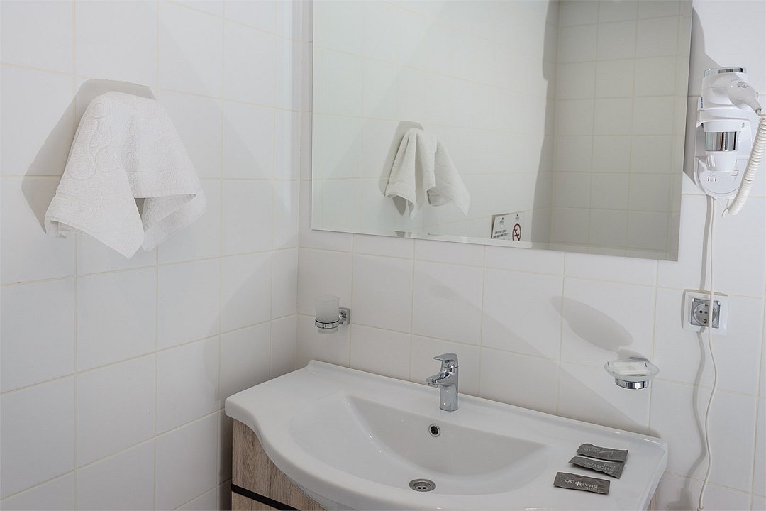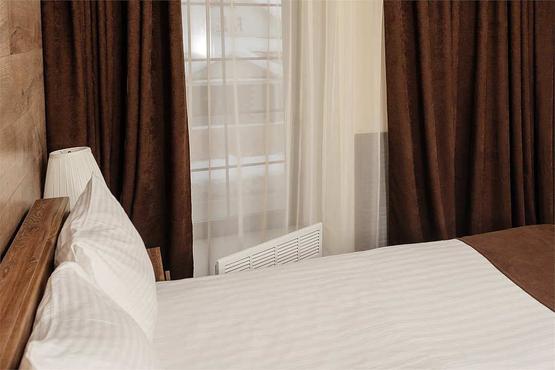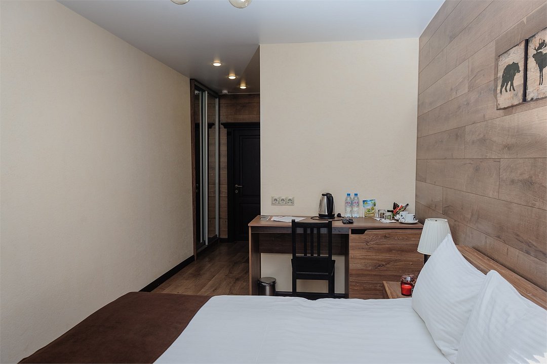 В улучшенных номерах нашей гостиницы много внимания уделено вопросам комфорта. Они имеют большую площадь, чем обычные номера, просторный санузел с улучшенным комплектом душевых принадлежностей. Большая светлая комната с нейтральным интерьером обставлена таким образом, чтобы удовлетворить все потребности гостей. Здесь вы найдёте большую кровать с очень удобным ортопедическим матрасом, заправленную качественным белоснежным бельём, шкаф для вашей одежды, большое зеркало на стене, письменный стол, прикроватные тумбочки, а также сейф, мини бар и набор для чая/кофе на две персоны. Санузел тоже полностью укомплектован всем необходимым для вашего комфорта: большая тумбочка, зеркало, душевая кабина, фен, коврик для ног, комплект полотенец и косметика для душа. Площадь номеров данной категории 25 м2.Услуги и удобства