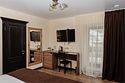 ванная комната, душевая кабина, банные полотенца, тапочки, косметические средства, ортопедический матрас, шкаф для одежды, вешалки, письменный стол, зеркало, мини-бар, чайный набор, сейф, минеральная вода, чайник, стул, тумба, телевизор с плоским экраномВ гостиничном номере