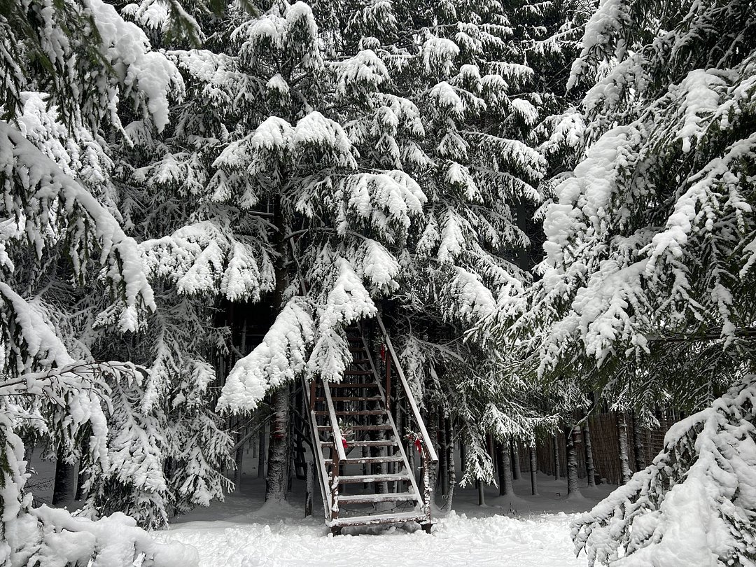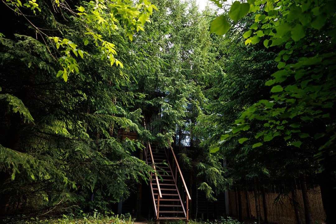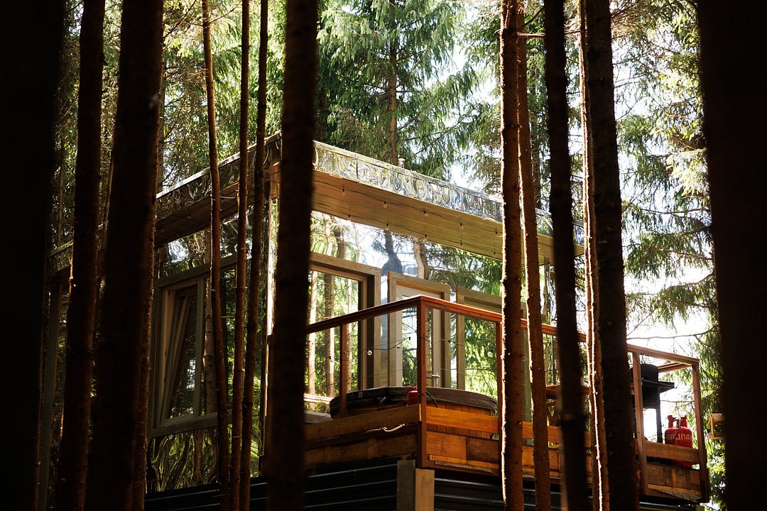 Оригинальность и приватность. Тот самый дом на дереве из детской мечты. т земли в кронах всегда зеленых елок.