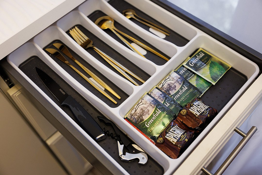 - посуда, холодильник, чайник, СВЧ;