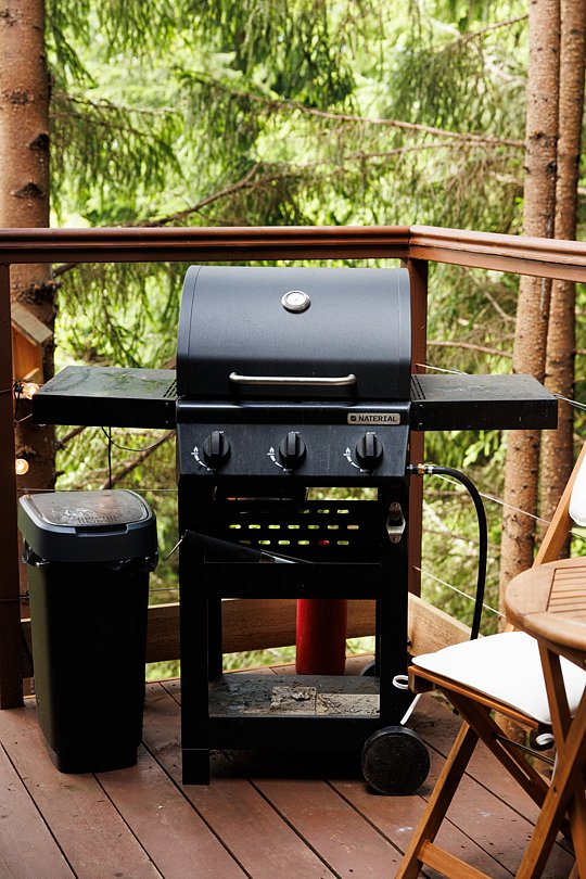 Зона барбекю тоже на террасе наверху. Готовить рыбу, мясо, овощи почти дома.