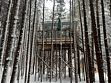 Дом расположен в лесу, между прекрасными елями. Атмосфера присутствия в лесу, лежа на кровати.