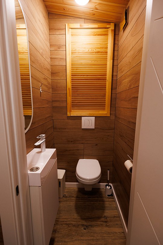 Дом расположен на окраине деревни, с собственным выходом в лес. Самый крайний — отдых без посторонних взглядов и контактов с людьми. Есть опция удаленного заезда — без встречи.