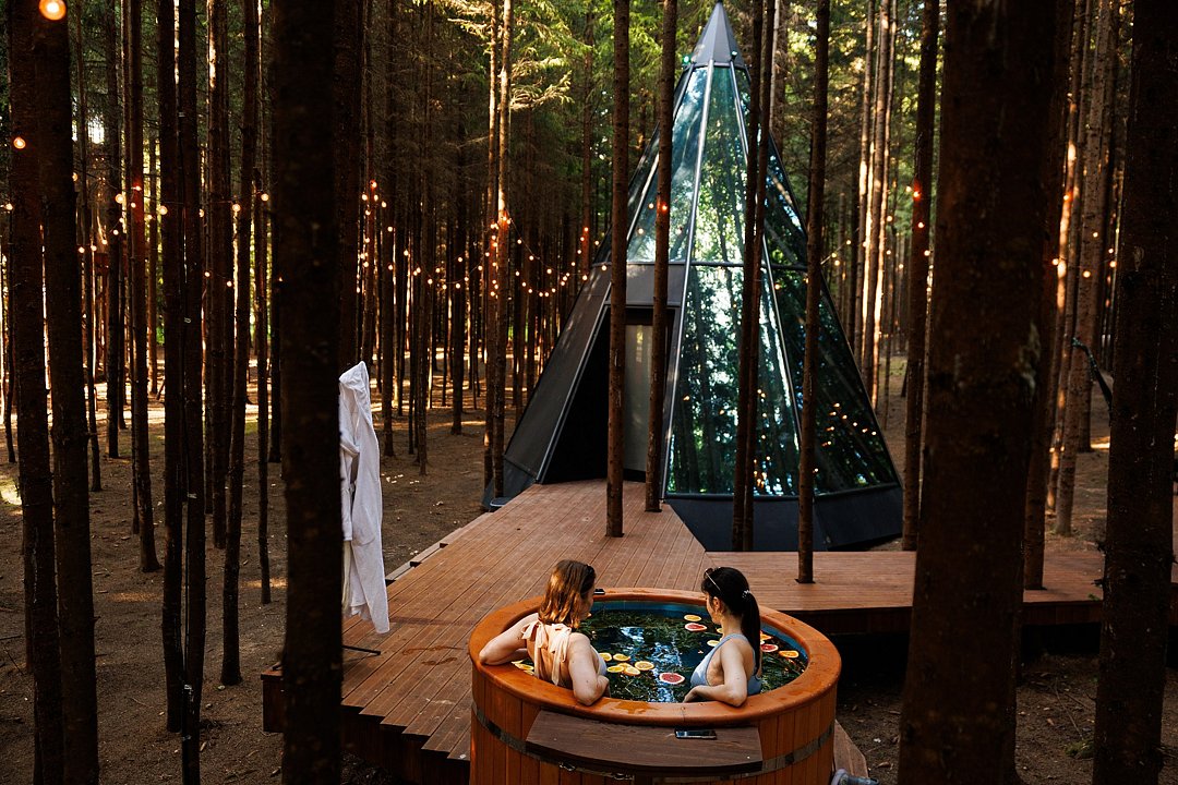 - Первая брачная ночь в стеклянном доме-пирамиде или зеркальном доме на дереве;