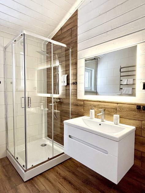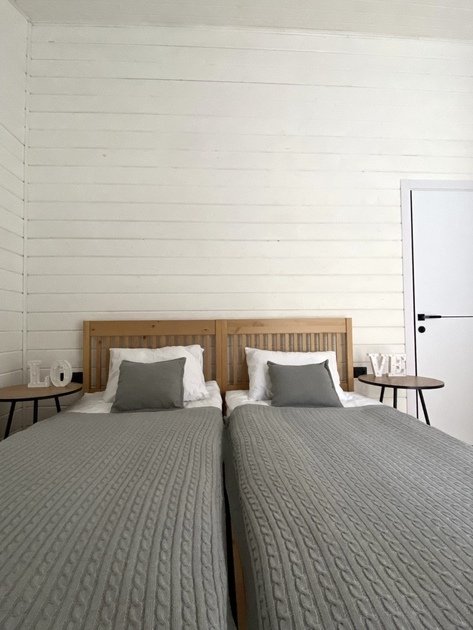К вашим услугам новый современный дом, оснащенный всем необходимым для комфортного проживания, с возможностью размещения до 12 гостей — 8 на основных, и 4 на дополнительных евро-раскладушках. Есть детская кроватка для малыша.