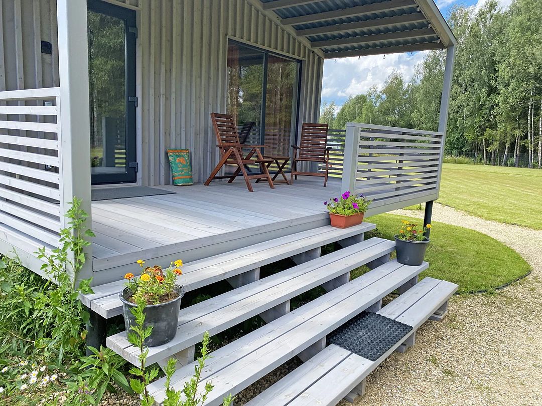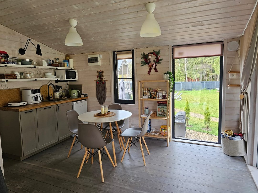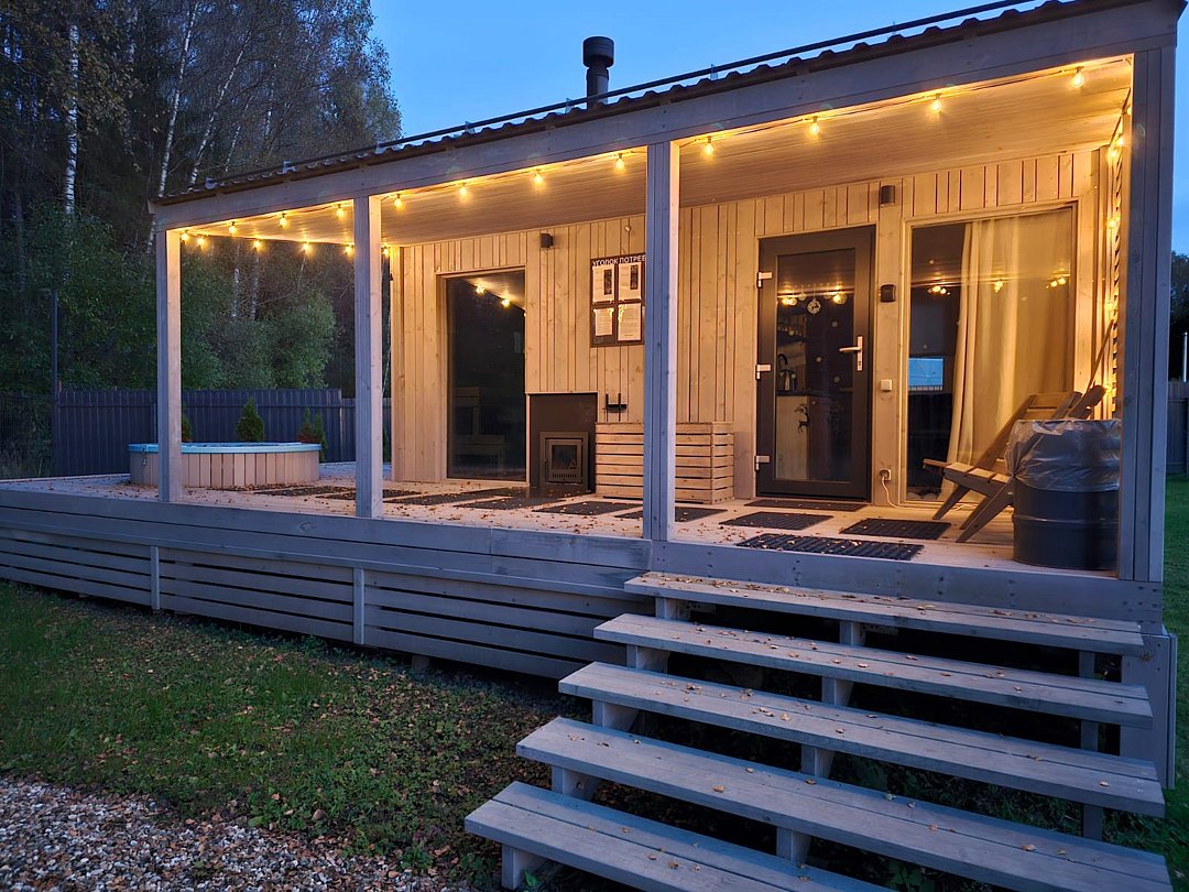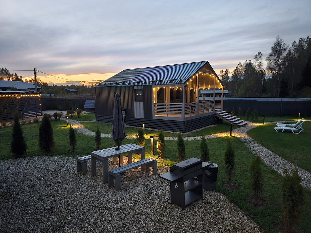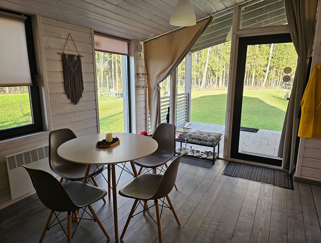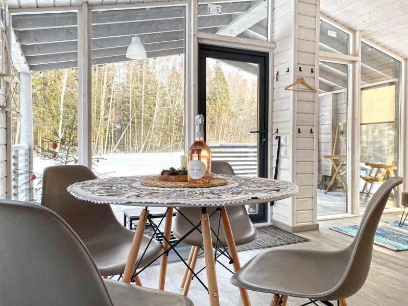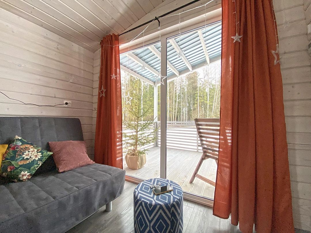 Дом Пелли идеален для двоих, это уютное гнездышко с видом на лес. Со своей зоной BBQ, столиком и лавочками. С чудесной верандой.