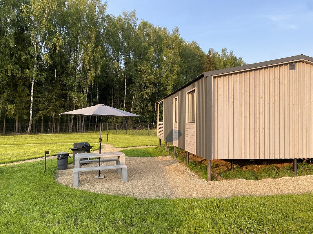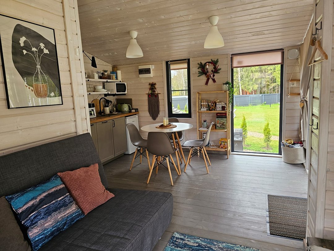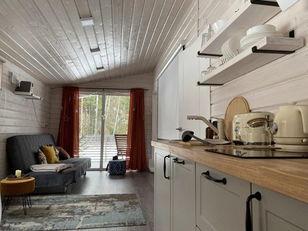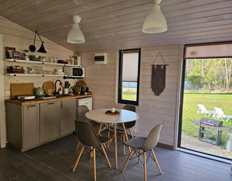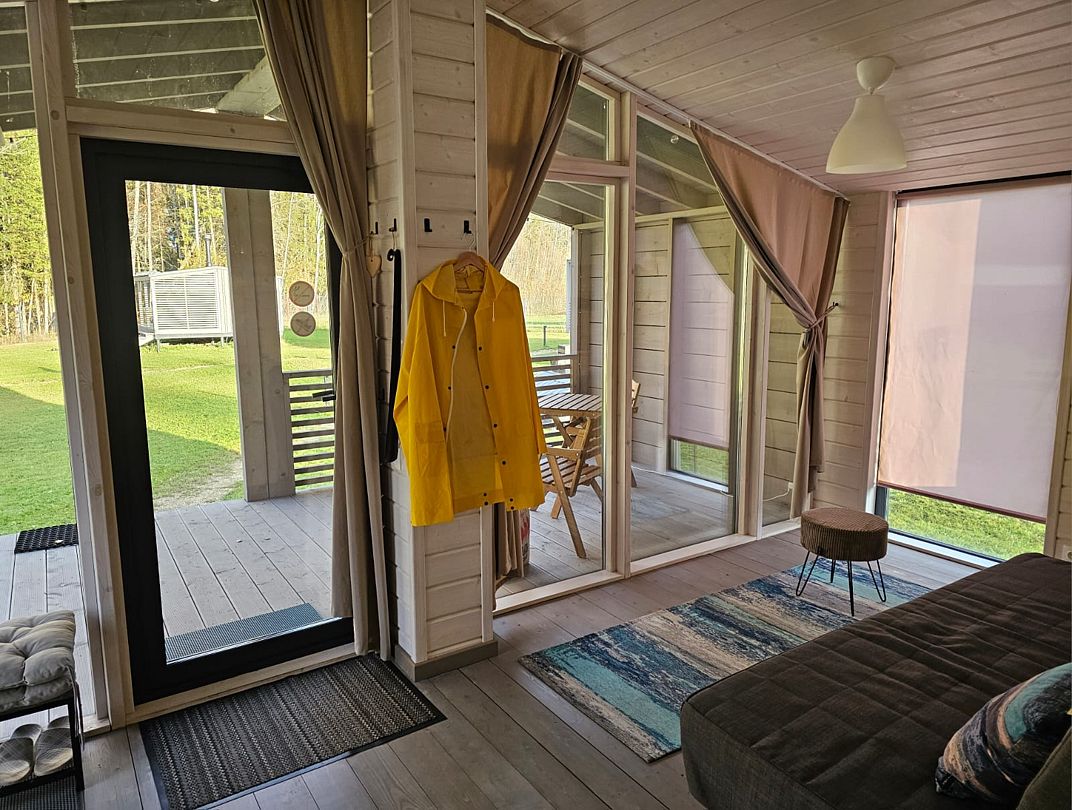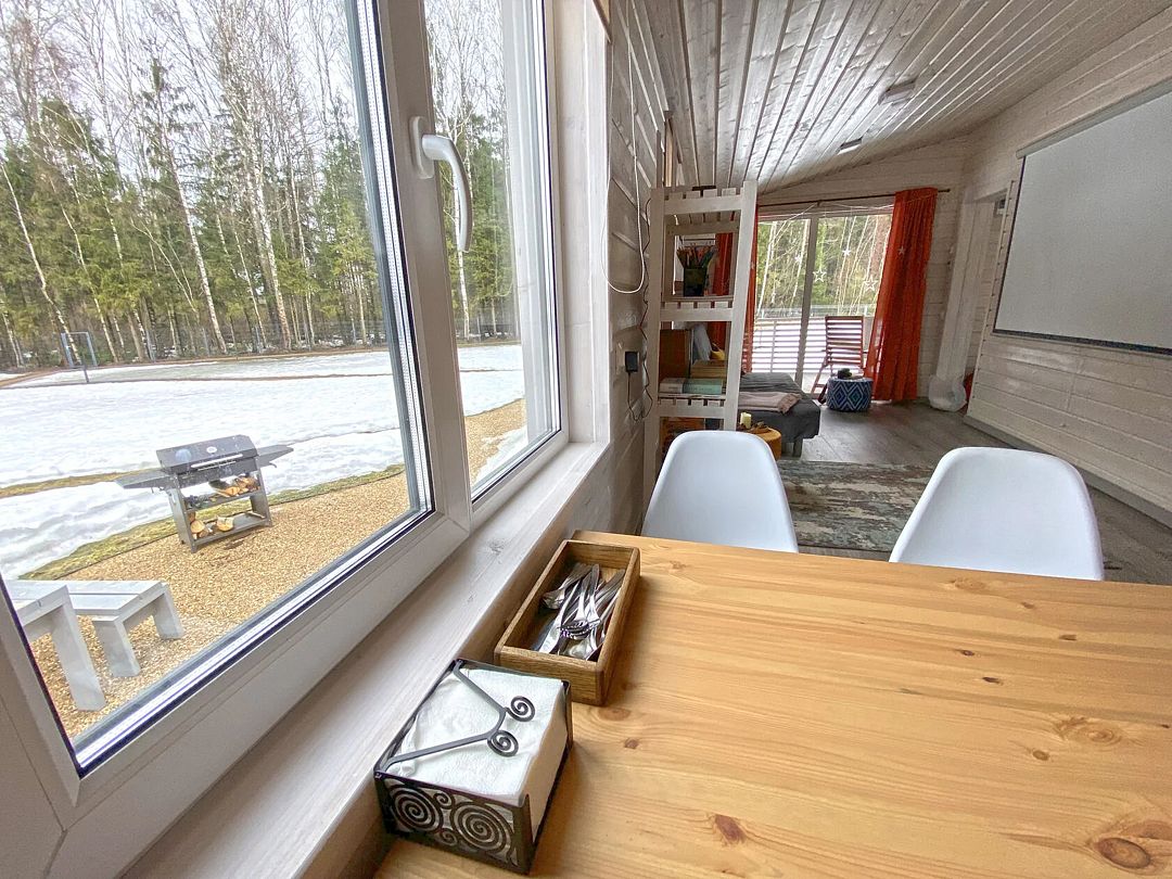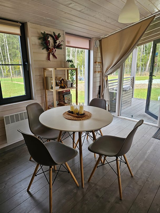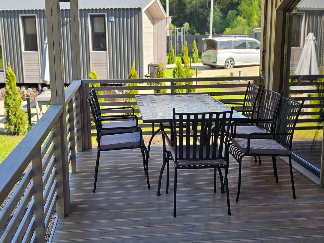 Дом Пелли идеален для двоих, это уютное гнездышко с видом на лес. Со своей зоной BBQ, столиком и лавочками. С чудесной верандой.