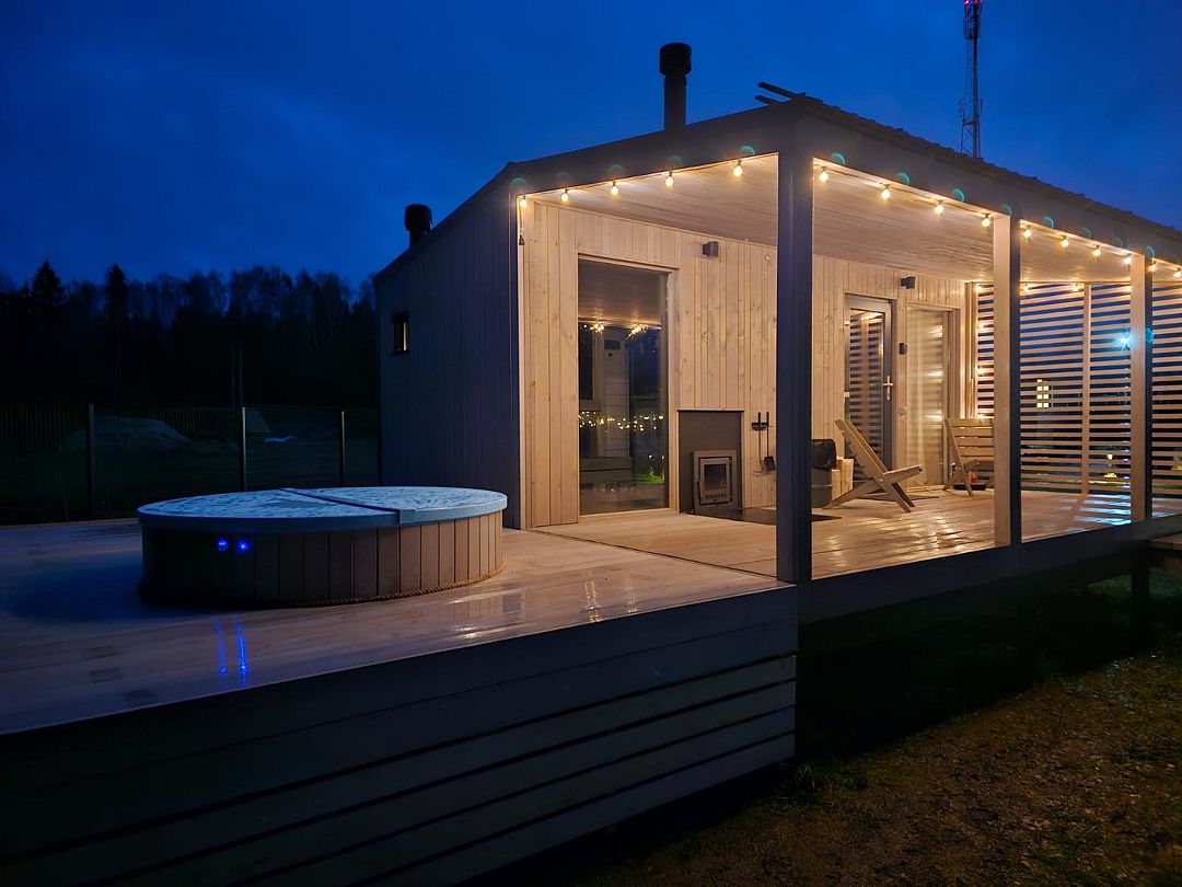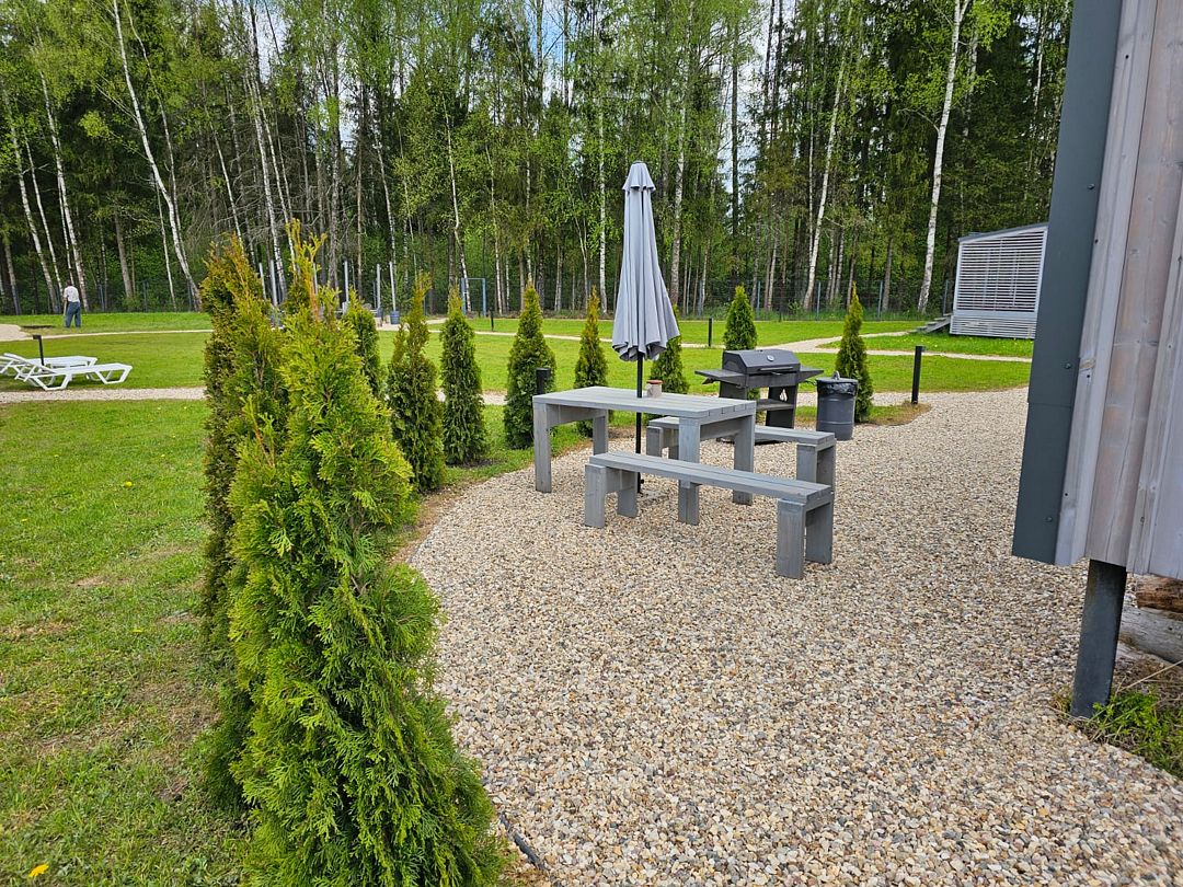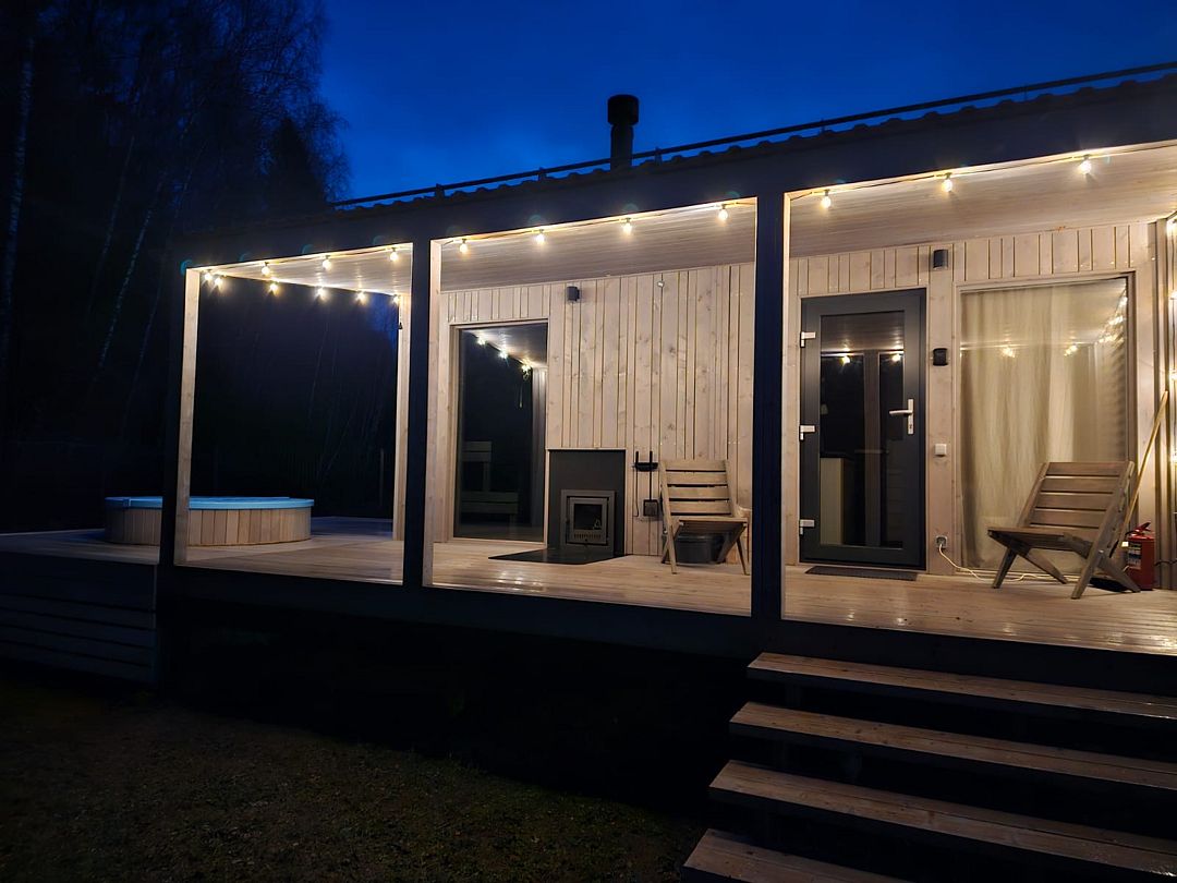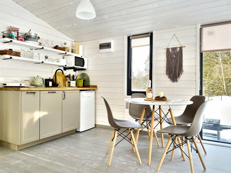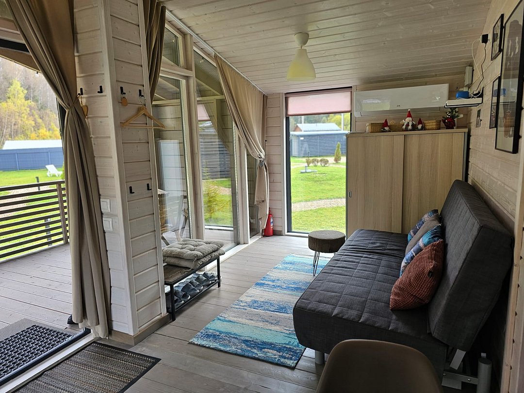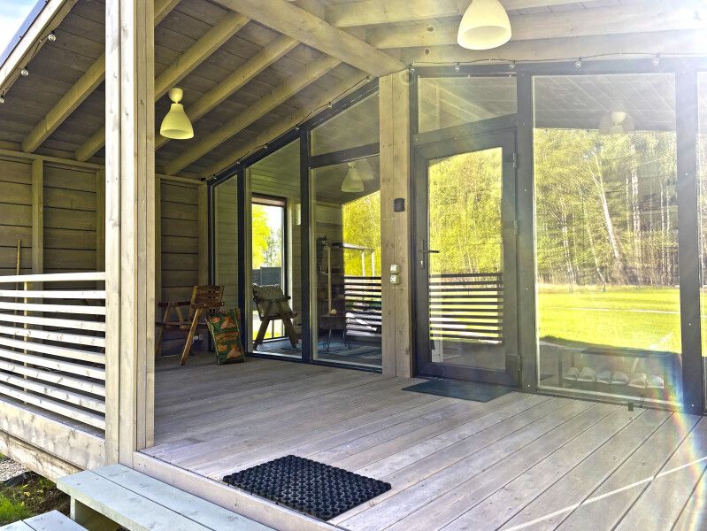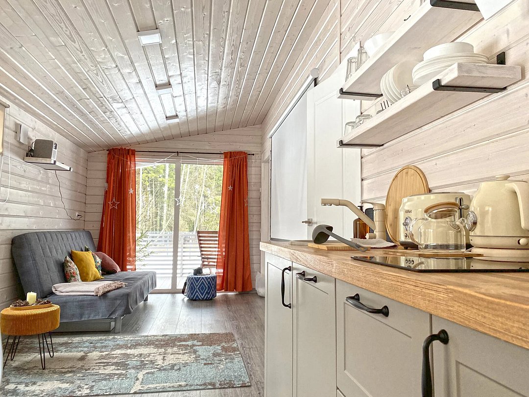 Дом Пелли идеален для двоих, это уютное гнездышко с видом на лес. Со своей зоной BBQ, столиком и лавочками. С чудесной верандой.
