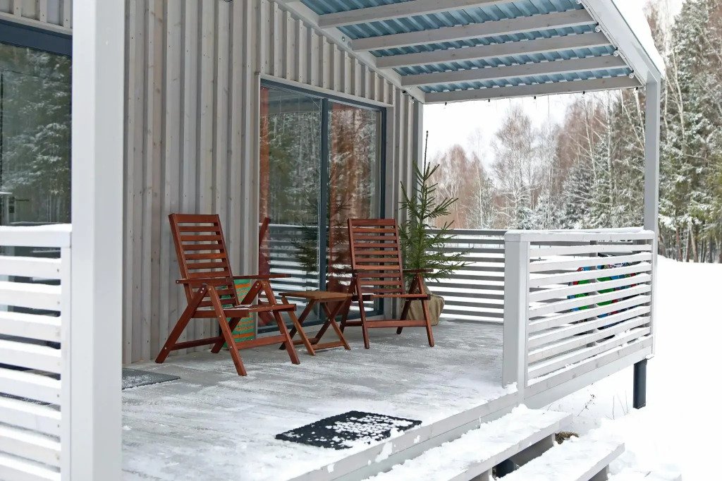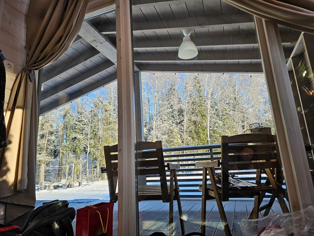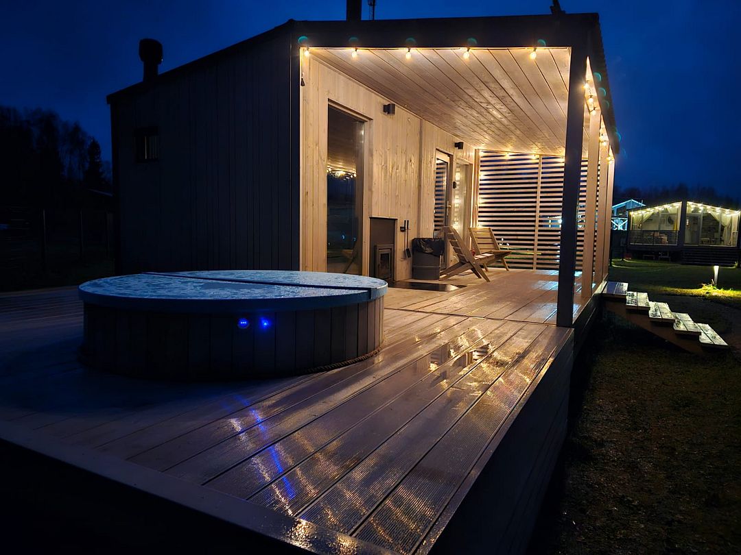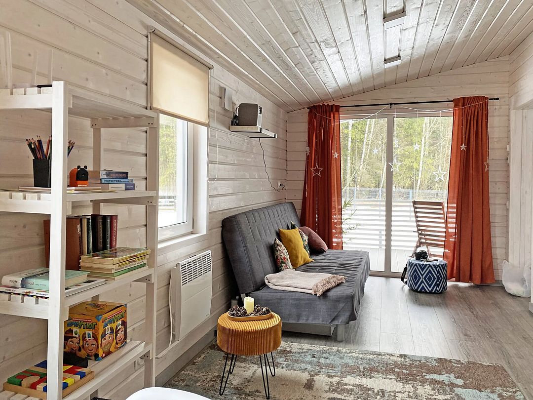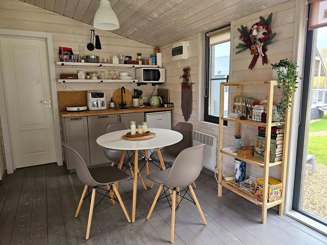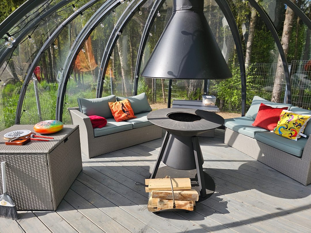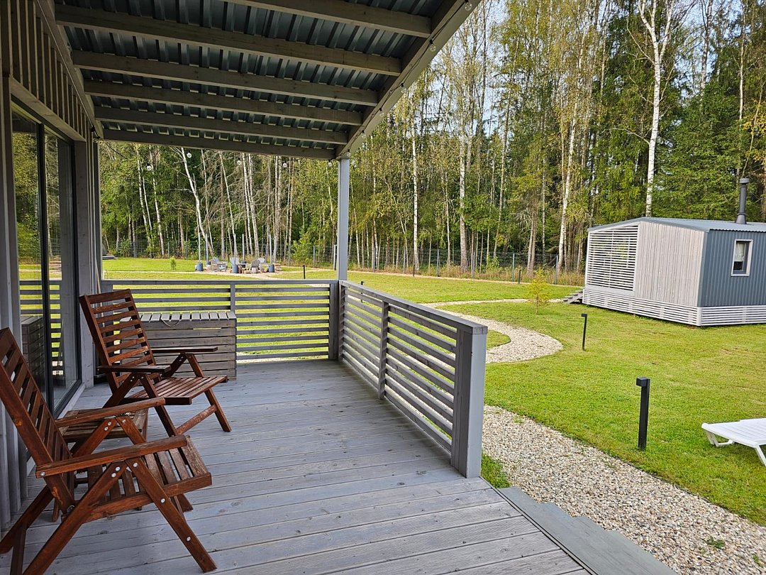 Дом Пелли идеален для двоих, это уютное гнездышко с видом на лес. Со своей зоной BBQ, столиком и лавочками. С чудесной верандой.