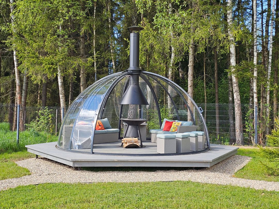 Прозрачный геокупол с очагом