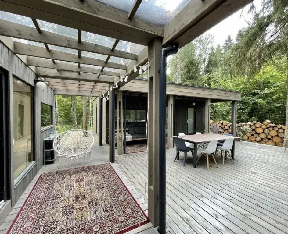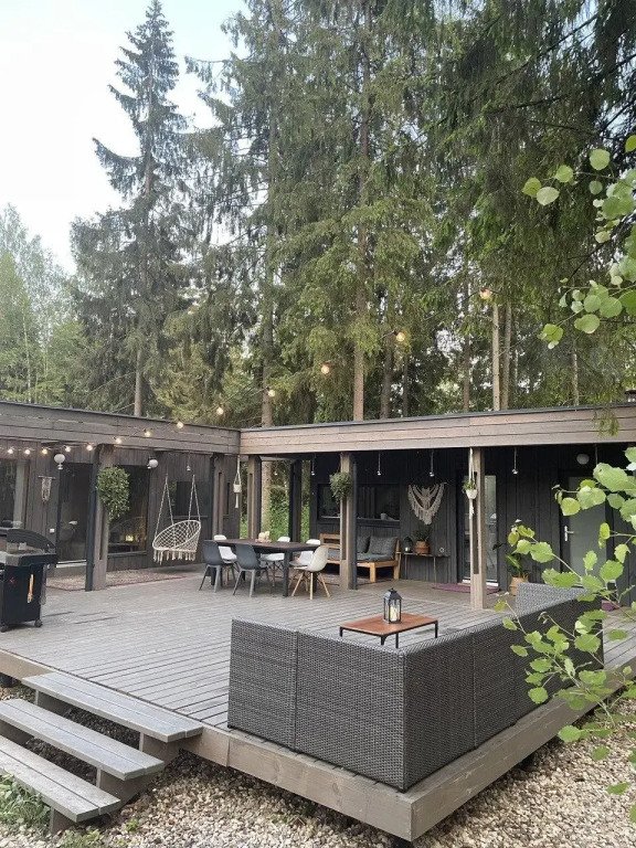 Активный или пассивный отдых — выбор за вами. Шале в хвойном лесу находится в Веретёнки. Этот коттедж располагается в 3 км от центра города. Рядом с коттеджем можно прогуляться. Неподалёку: Москва-Сити, Главное здание МГУ и ВДНХ.