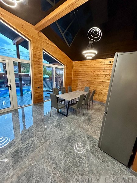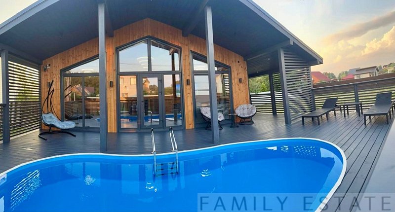 В доме есть все необходимое для комфортного проживания. Три спальни, кухня-гостиная, ванная комната, сауна. терраса. открытый бассейн.