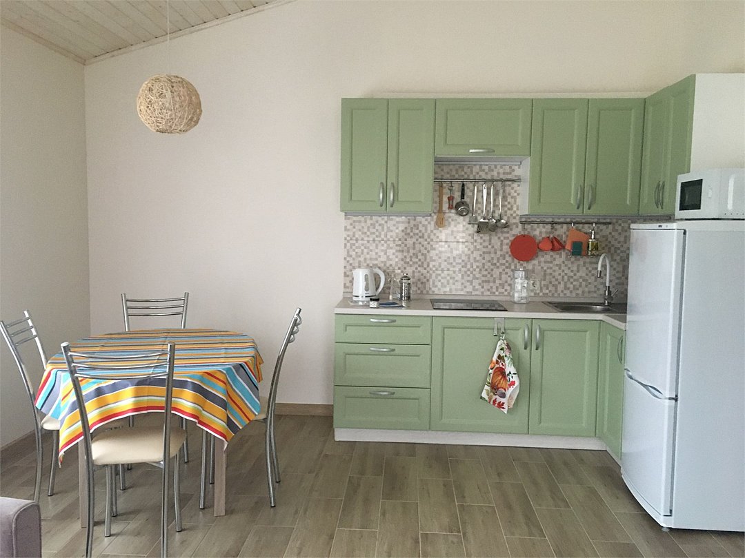 телевизор, спутниковое телевидение, Wi-Fi, холодильник, светильник, настольные лампы, плита для приготовления пищи, микроволновая печь, ванная комната, душевая кабина, банные полотенца, терраса, две односпальные или большая двуспальная кровать, ортопедический матрас, стулья, шкаф для одежды, вешалки, обеденный стол, комод, ковер, две комнаты, чайник, унитаз, раковина, обеденная зона, гостиная зона, отопление, ламинат, кухонная посуда, стаканы, кухонная утварь, столовые приборы, туалетные средства, мангал, принадлежности для барбекю, сушилка для белья, диван-кровать, раскладной диван, кухонный уголок, москитная сетка, номер для некурящих, вид на лес, набор для приготовления чая и кофе, вешалки-плечики, верандаВ коттедже