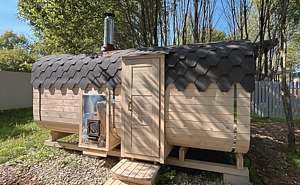 Для тех, кто любит готовить на свежем воздухе, предусмотрена зона для барбекю с мангалом и шампурами. Дом также оборудован собственной баней и подогреваемой купелью, что позволяет расслабиться и насладиться отдыхом. Рядом с домом есть место для парковки двух автомобилей.