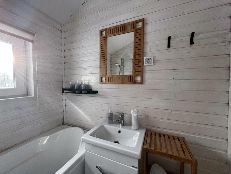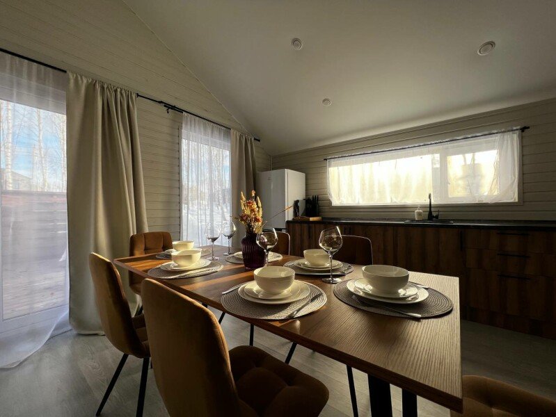 На открытом воздухе имеется зона для барбекю с мангалом, что позволяет готовить блюда на открытом огне. Для удобства гостей предусмотрено парковочное место, рассчитанное на три автомобиля. «FlatPoint Кедровый» представляет собой оптимальный выбор для тех, кто стремится к уединению на природе, не отказываясь от доступа к современным удобствам.