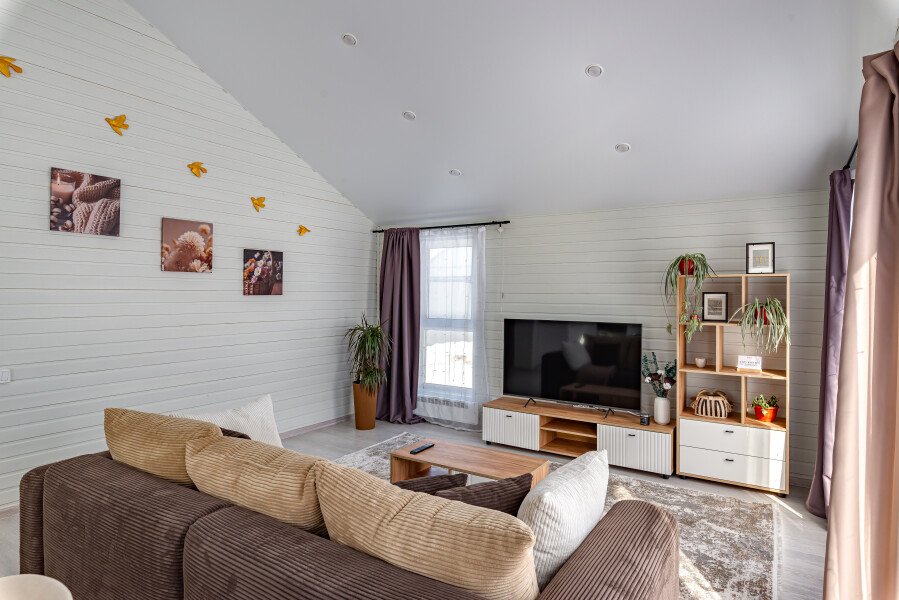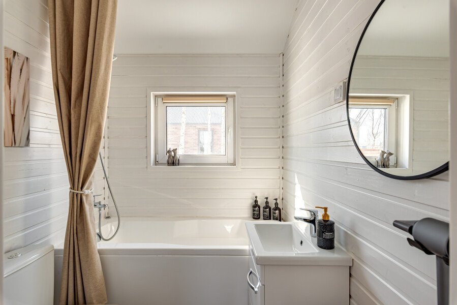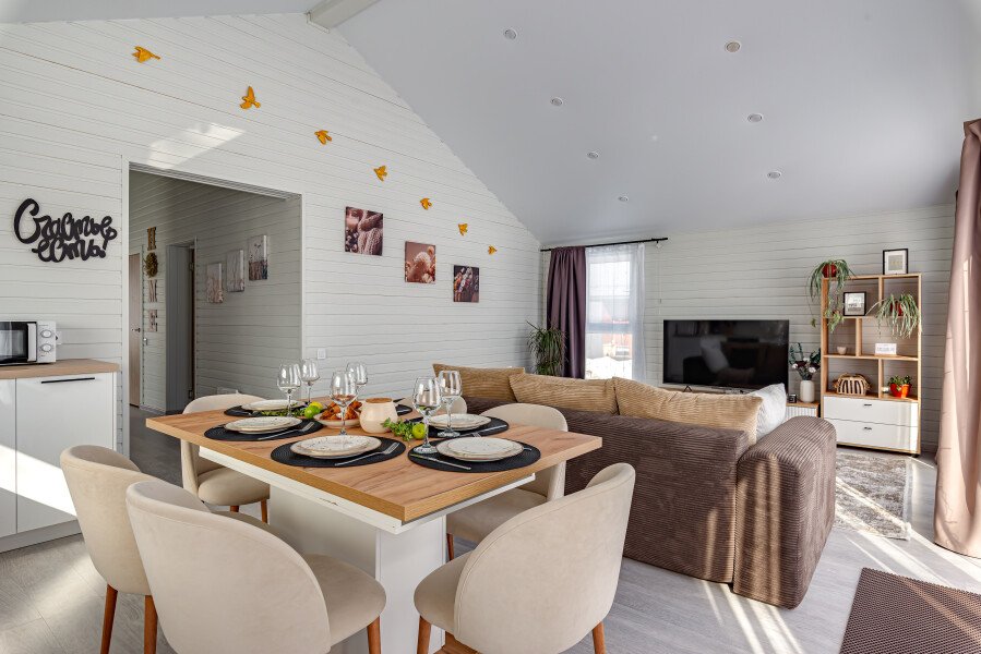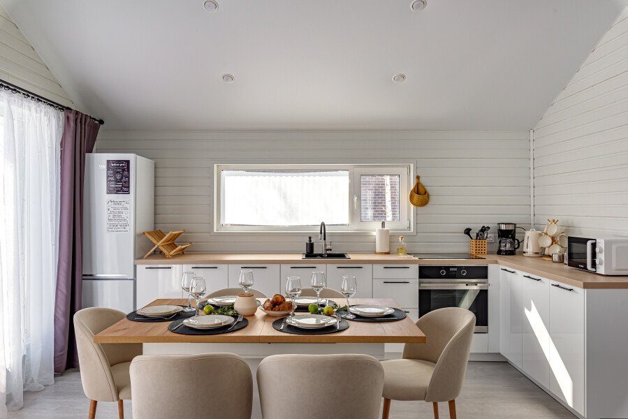 Просторный трехкомнатный домик приглашает гостей отдохнуть в комфортной домашней атмосфере. Уютные спальни обеспечат комфортный отдых, а просторная ванная комната порадует качественным набором косметики, мягким полотенцем и удобными тапочками. Современная кухня оборудована холодильником с морозилкой, удобной кофемашиной, электрическим чайником и даже посудомоечной машиной, позволяющей расслабиться и наслаждаться кулинарными экспериментами без хлопот.