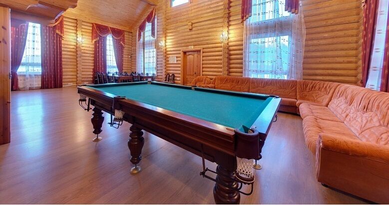 На первом этаже уютный холл с ТВ и мягкой мебелью, бильярд, 4 спальни, ванная комната с душевой кабиной, 2 санузла.