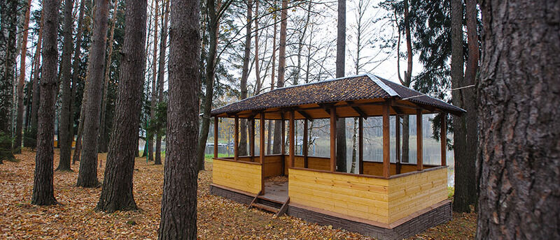 На территории базы есть собственный оборудованный песчаный пляж и лодочная станция, уединенные беседки, оборудованные мангальные площадки для барбекю, удачно расположенные среди леса деревянные летние домики, где пахнет солнцем, деревом и уютом, а также ухоженная территория и развитая инфраструктура.