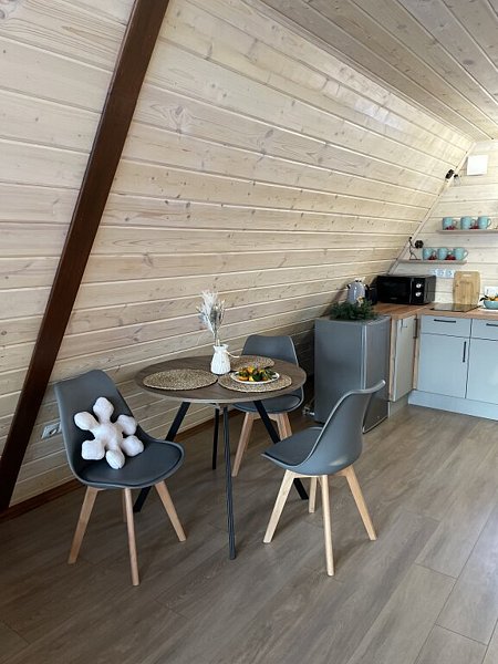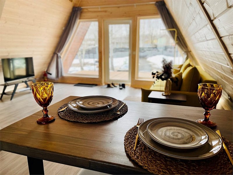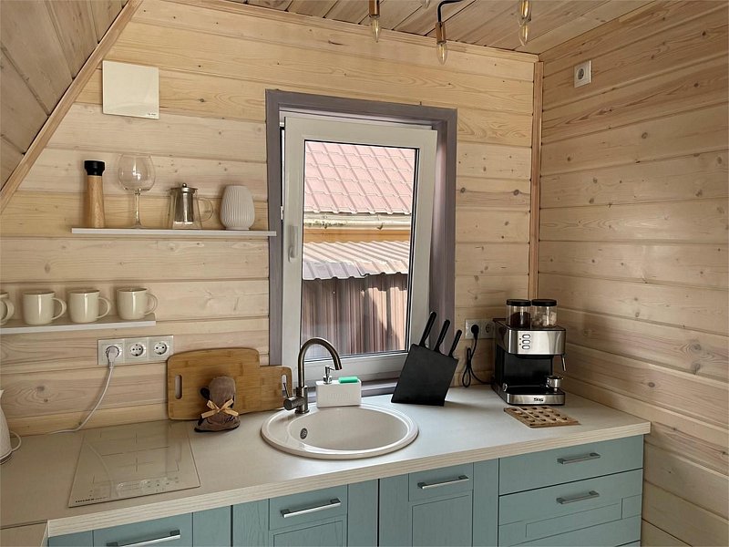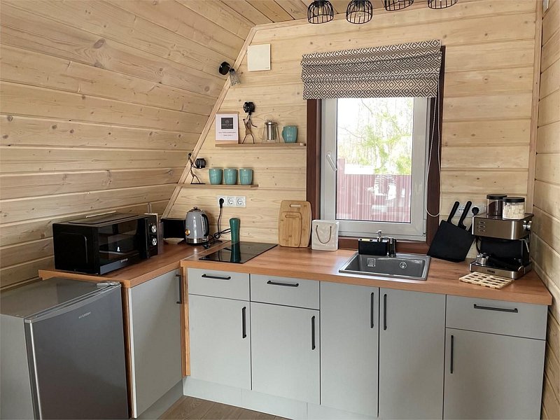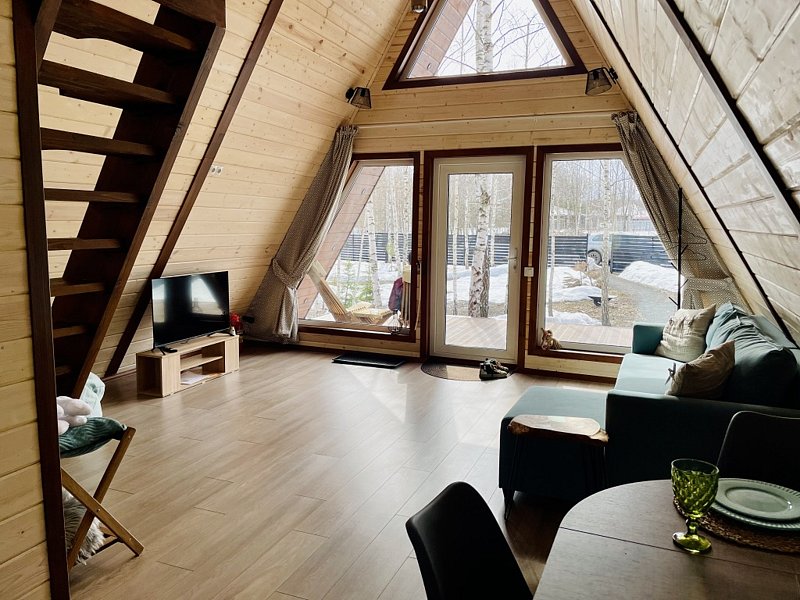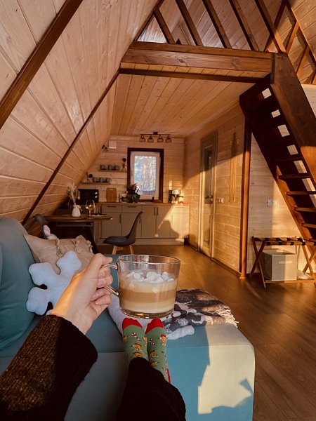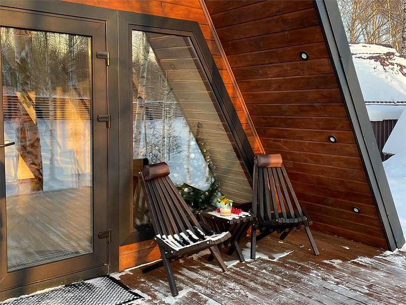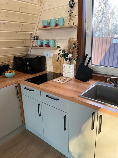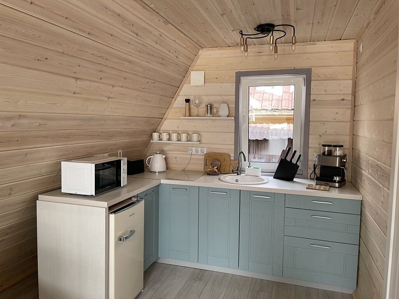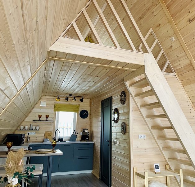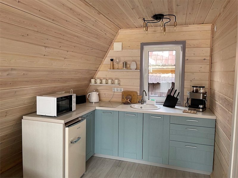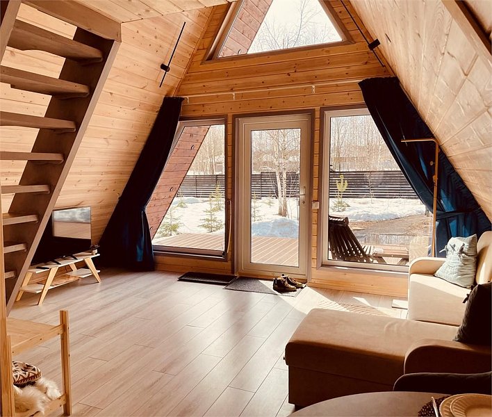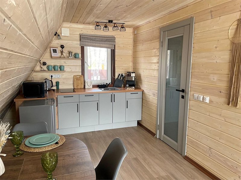 Вас ждут уютные домики, оснащённые всеми удобствами, необходимыми для комфортного проживания: милой кухней-гостиной, зоной SmartTV, Wi-Fi, санузлом с душем и потрясающим видом из панорамных окон.