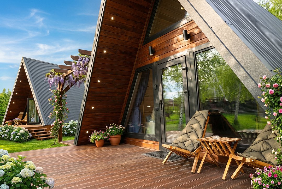 Вас ждут уютные дома, оснащённые всеми удобствами, необходимыми для комфортного проживания: милой кухней-гостиной, зоной SmartTV, Wi-Fi, санузлом с душем и потрясающим видом из панорамных окон.