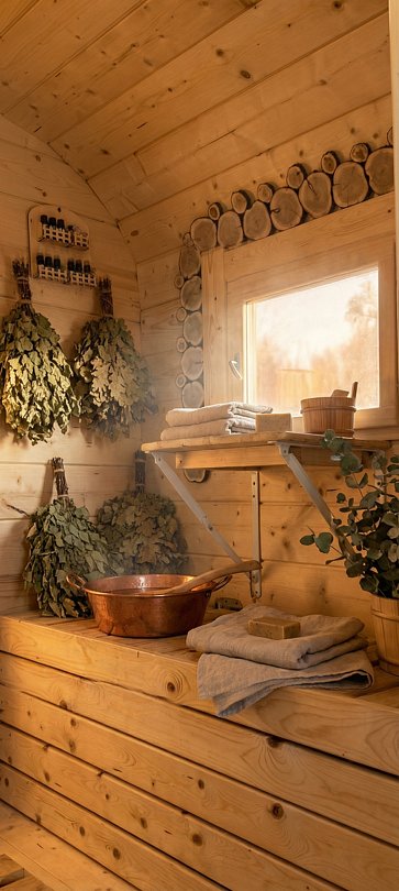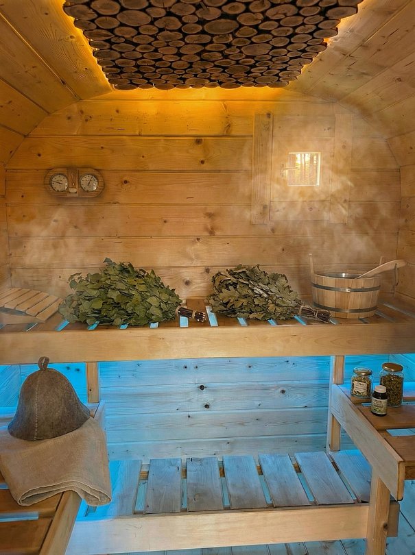 Инфраструктура: шапочки, дубовые веники, березовые веникиКомплексное парение продолжительностью 3 часа.